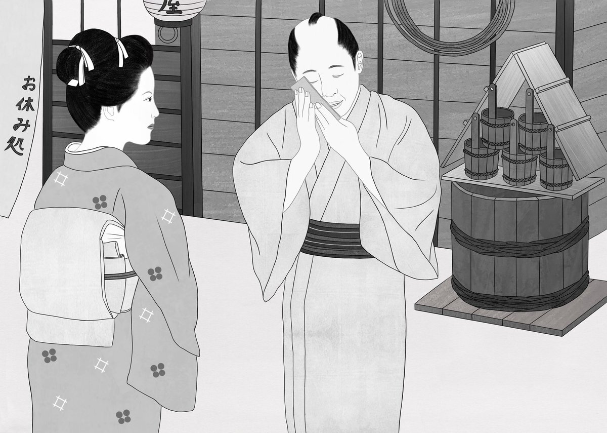 淡交社月刊「なごみ」10月号 蝉谷めぐ実さん(@megumi_semitani)がお書きになる「すずめ一席、風落とし」第第17話の挿絵を担当しました。今回は、さん七という前座の噺家が出てきます。彼がファンである女義太夫の懐紙をうっとり頬ずりしながら懐にしまう場面です。 #淡交社 #イラスト #挿絵 #装画 pic.x.com/UTCguNxz5l