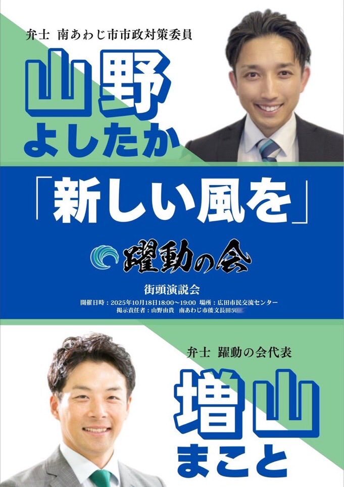 【🌈#南あわじ市 の未来を輝かせよう✨】 #淡路人形座 『🌊躍動の会🌊』#山野よしたか さんは 地元倭文出身の地元愛溢れる情熱家❤️🔥 農業・漁業を支え子育て支援や観光振興で雇用創出をお約束‼️ 🌟あなたの一票で市政が変わります‼️ 有権者の皆様何卒『山野よしたか』に清き一票🗳️宜しくお願いします🙇♀️ pic.x.com/I5WAmOH5St x.com/hmpct9hz6zvf9f…