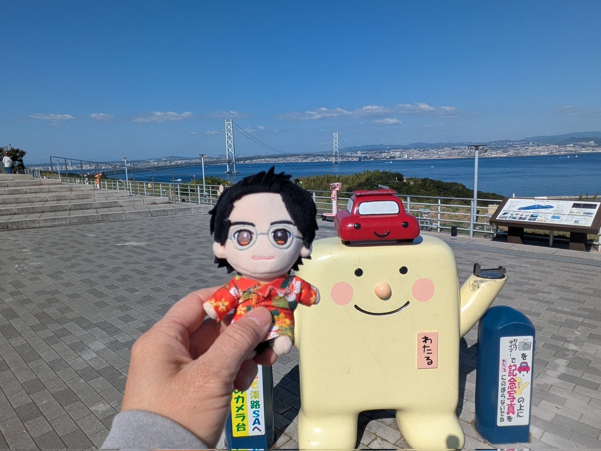 仕事の休日。 下調べがてらドライブちう。 わたちゃーん、たいぴーちゃーん 明石海峡大橋だよ。 そして淡路SAでも撮りたかった 「わたる」と「わたる」。 ベタですんません。 淡路島の飲むヨーグルト、うんま。 #カンコーズ #淡路SA pic.x.com/MV7uLqXQqw