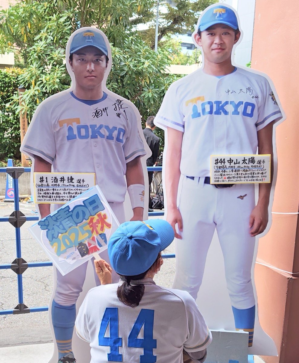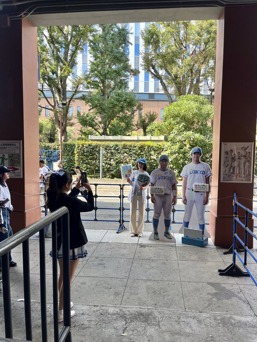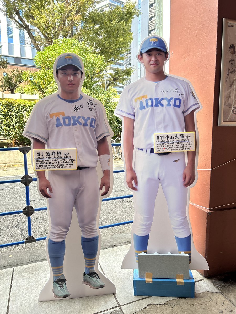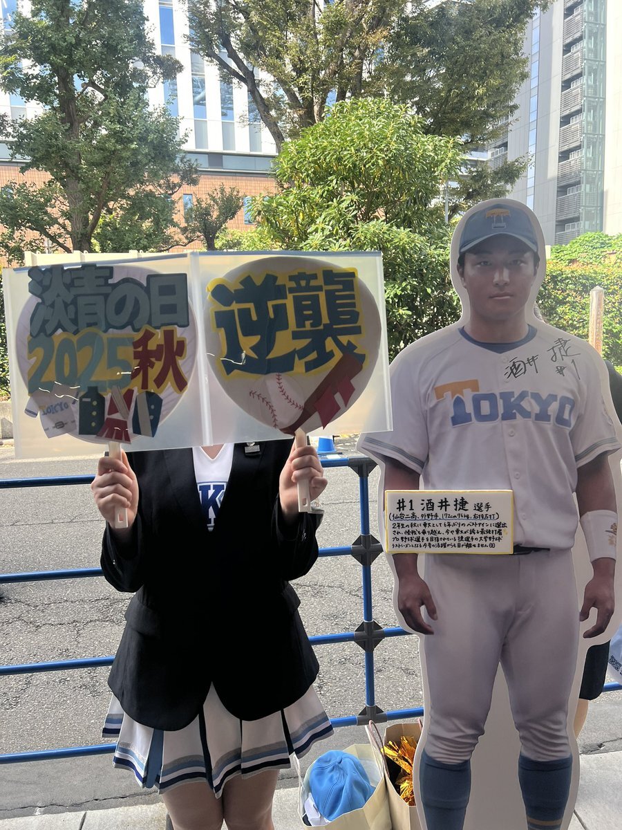 【#淡青の日2025秋】 本日は「淡青の日」!🩵 応援席入口の等身大パネル横に特設のフォトスペースを設けております! イチ公も応援に駆けつけてくれましたꉂꉂ📣 ぜひ“淡青グッズ”を身につけて神宮球場応援席にお越しください⚾️ #東京大学野球部 #東大野球部 #東大応援部 #秋季リーグ戦 pic.x.com/o2gMdi2JoV x.com/tokyo_bbc/stat…
