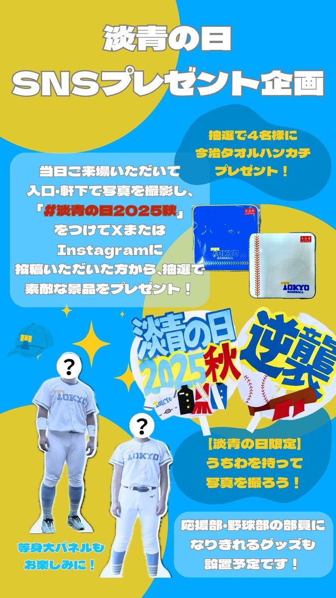 【野球部×応援部 淡青の日2025秋】 明日10/5(日)は「淡青の日」です! 様々な企画をご用意しておりますので、ぜひ皆さま神宮球場にお越しください! 応援席を淡青色に染め上げましょう!🩵 詳しい企画内容は画像をご覧ください👀 #淡青の日2025秋 #東京大学野球部 #東大野球部 #東大応援部 x.com/tokyo_bbc/stat…