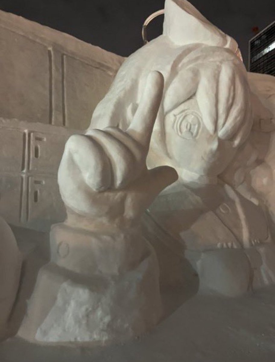 たまにネットで流れる雪像アロナ、あれ撮ったの俺だけど、アロナのイメージ著しく低下させた角度だったよなぁって今でも反省してます() #深夜だから何言っても許される pic.x.com/WhtFL85fHx