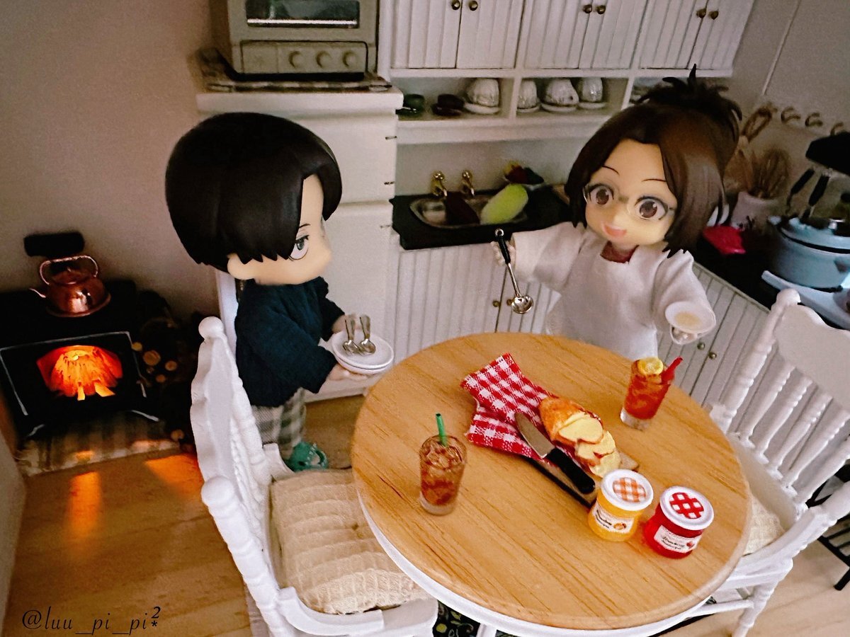 お題【まほう】 ⚯̫さぁっ!できたよ〰️ハソジサン特製シチューだ!今回はいつもと一味違うよっ‼︎美味しくなる魔法をかけておいたからね! (눈_눈)ほぉ…それは楽しみだな (オイオイオイオイ‥ハソジが俺の割烹着着て俺にシチューを振る舞うとはクソカワ♾️) #深夜のねんどろ撮影60分一本勝負 pic.x.com/z9gGSSaAib