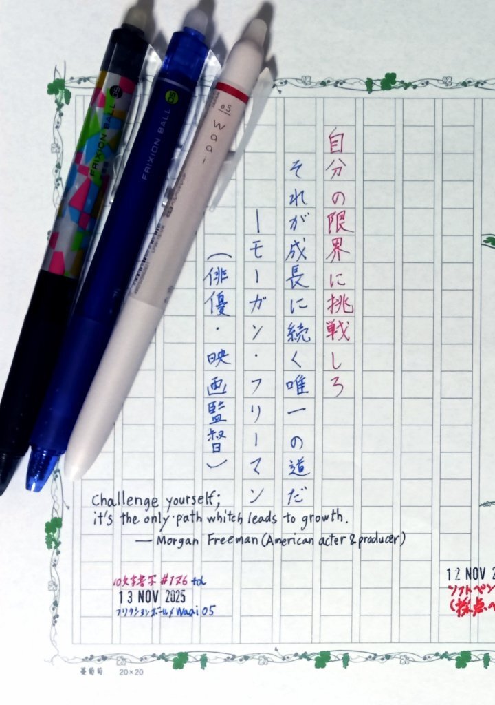 今日の一日一書。 今は手帳の右ページ(メモページ)代わりに毎日原稿用紙に書いているが、ファイリングすれば手帳であり日記みたいなもの。 スポーツあり、芸能・音楽あり、文学・歴史あり、社会あり、科学あり、そしてチャンスカード! #深夜の自主書写もどき30分一本勝負 #飾り原稿用紙ユーザー会 pic.x.com/j1DKzHmiWu