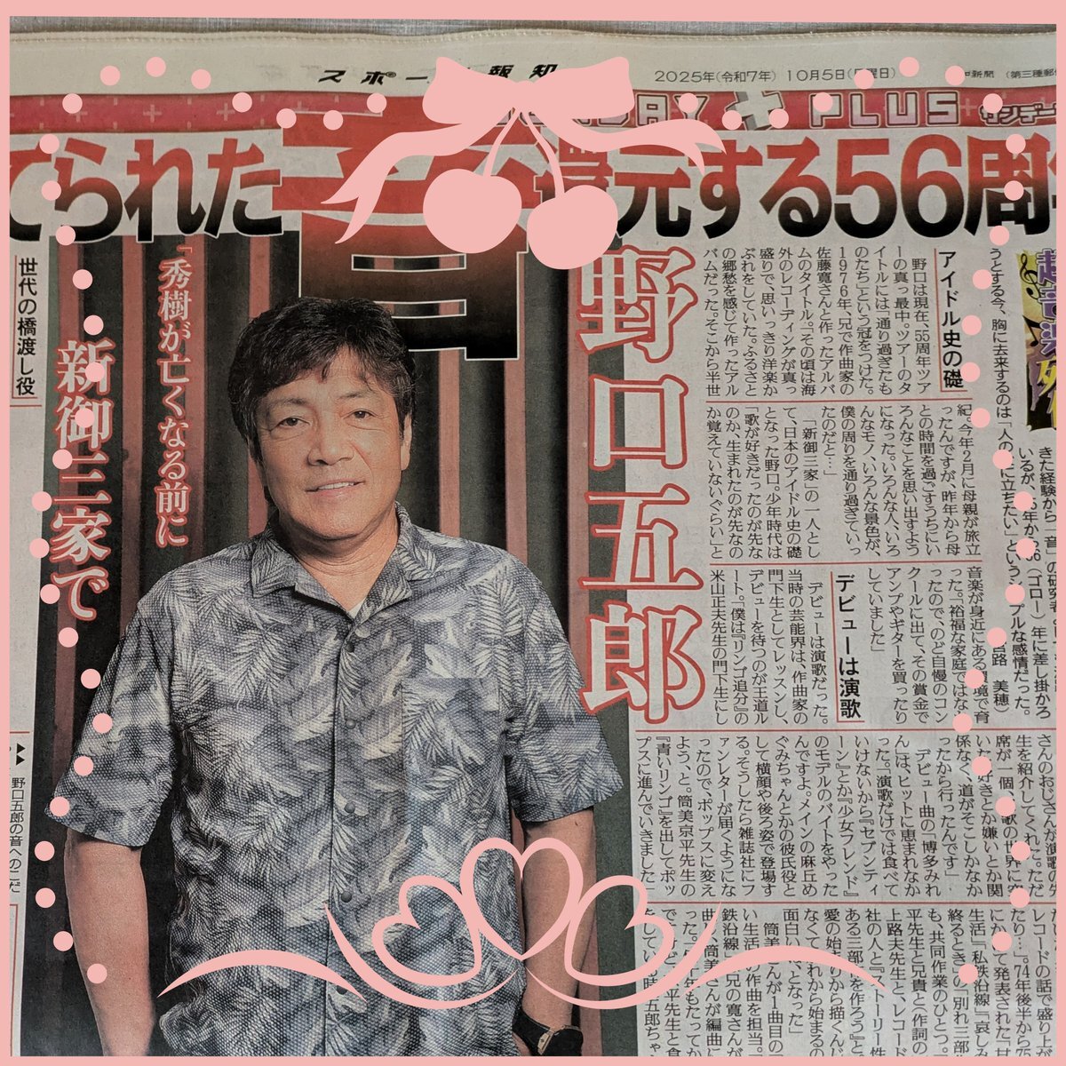 今朝のスポーツ報知に野口五郎さん大きく出ています💞NHKのど自慢にもゲスト出演😄朝からテンション爆上り😍⤴️56周年期待大ですね✨嬉しい❣️ #深層振動 #DMV pic.x.com/CGuwHqTvvZ