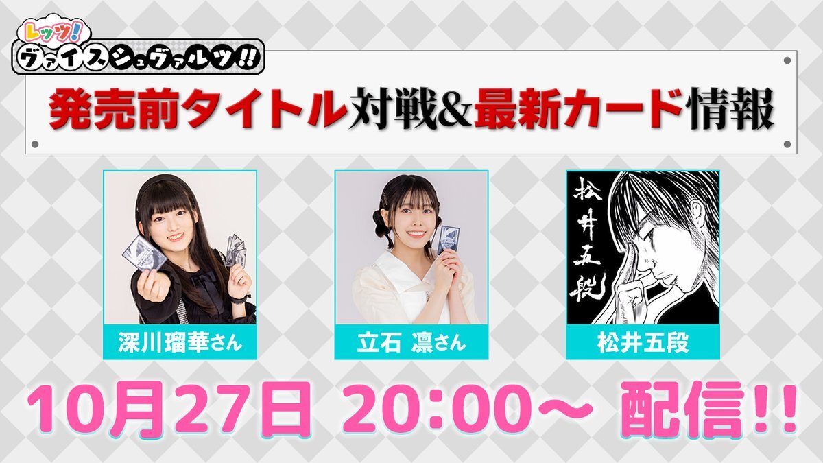 💥まもなく2️⃣0️⃣時より配信💥 📺レッツ!ヴァイスシュヴァルツ!!🎤 💫 最新カード情報盛りだくさんの配信です! 【出演】 #深川瑠華 さん #立石凛 さん 松井五段がご出演!! WGPに向けて対戦も! 🔽配信はこちら! youtube.com/watch?v=ZCKbIL… #WS pic.x.com/xwgetU9m0V