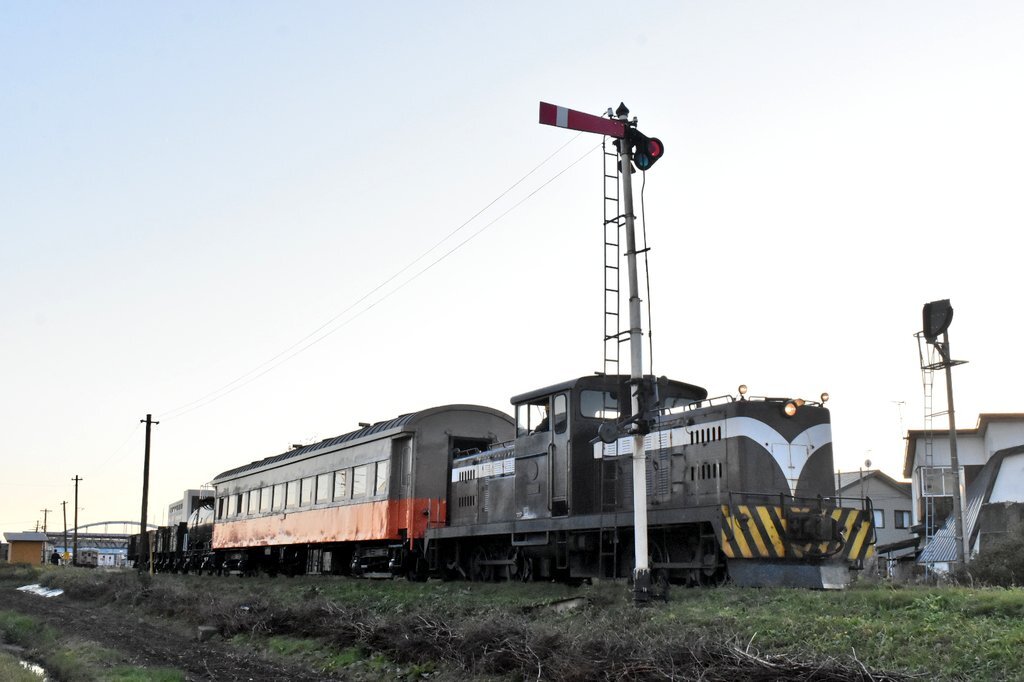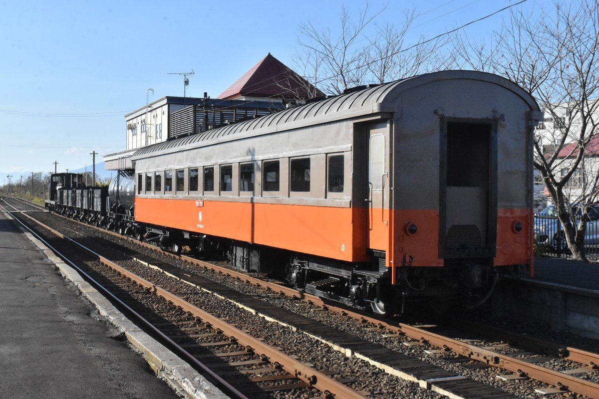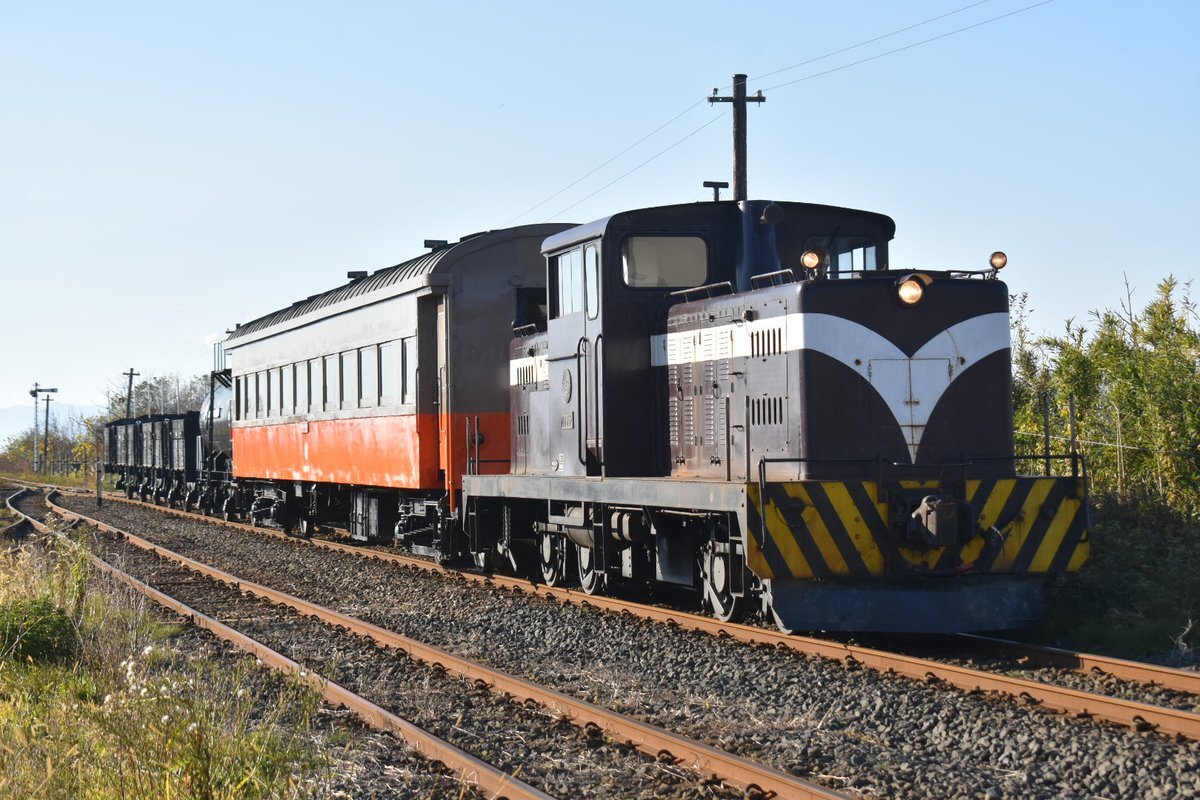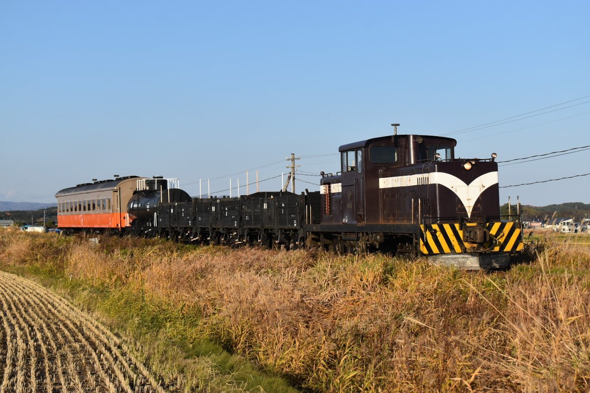 二軸貨車と旧型客車にロッド駆動式ディーゼル機関車まで繋げた欲張りセット #津軽鉄道 #混合列車 pic.x.com/Kt7L2SYMMY