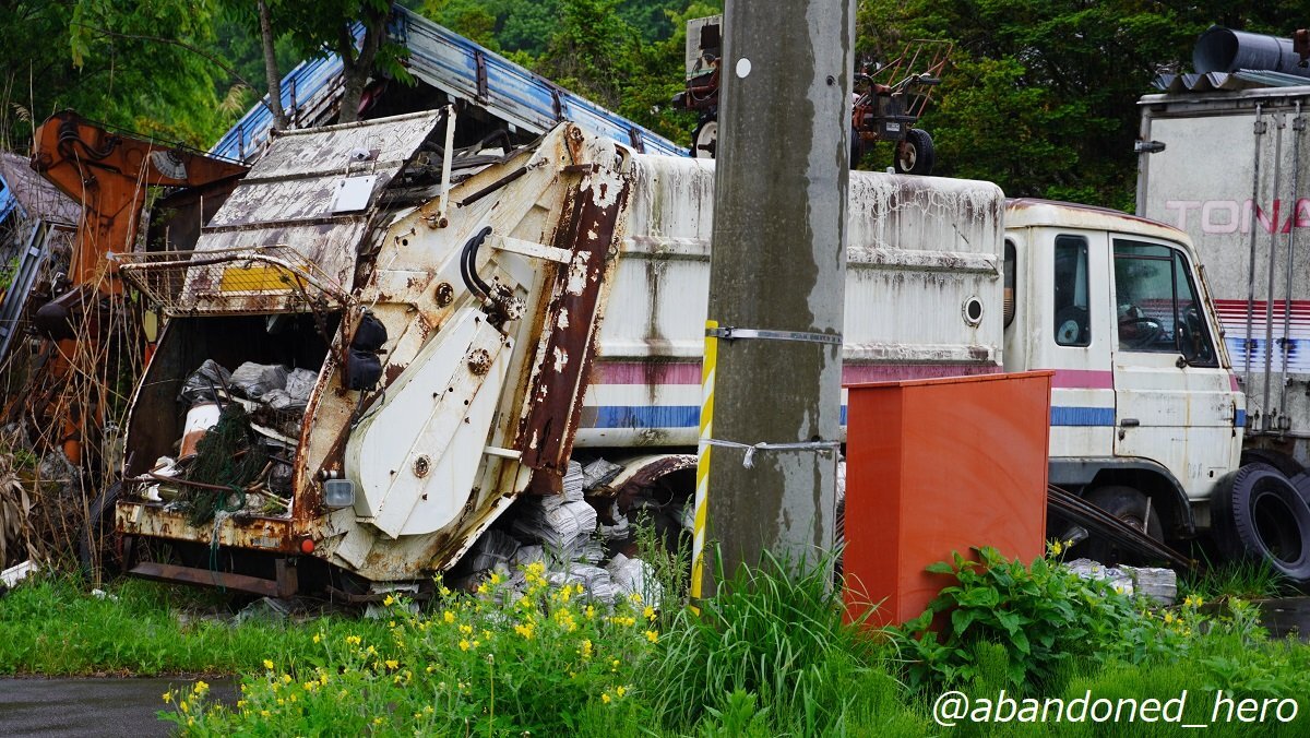 日産ディーゼルコンドル清掃車 9/24は #清掃の日 だそうです ということで清掃車の廃車体をば 基本的に廃車体というのは倉庫に転用されるか放置されるかの2択ですが、ゴミ収集車は倉庫にはならないので後者 よって滅多に出会えないです 前にあるトナミのコンテナみたいな色してるのが目を引きます pic.x.com/KArNm6mOrH