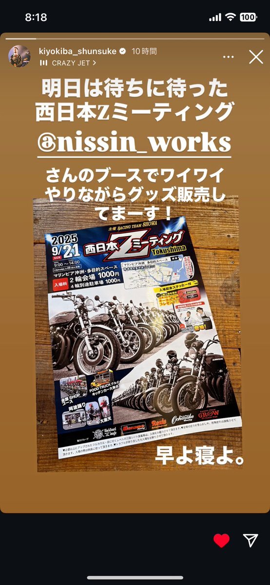 あー西日本在住だったら絶対いってたなぁ〜🥹生俊ちゃん🥹✨バイクも見れて俊ちゃんにも会えるとか最高すぎるでしょ #西日本Zミーティング #清木場俊介 pic.x.com/Ehes74R9FF