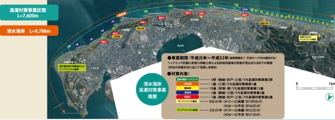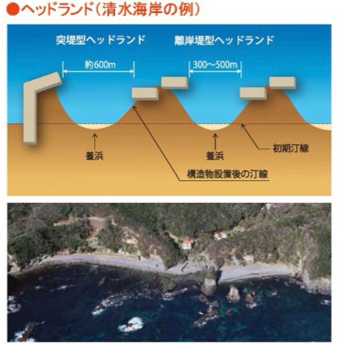 今朝は、侵食対策の一つ、ヘッドランド工法を紹介🤗 ヘッドランド工法は、岬と岬の間に挟まれた砂浜が安定していることにヒントを得た工法です🤔 離岸堤に比べて、開口部を広く取ることができるのが特徴😊 ヘッドランド区間における施設の整備は平成11年度までに完了しています😳 #静岡土木 #清水海岸 pic.x.com/uHVsjWr6cH