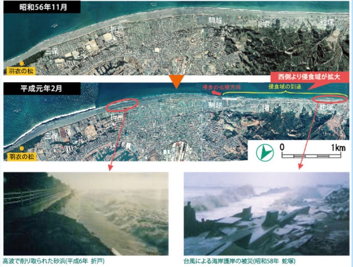 先週の静岡海岸に続き、今週は清水海岸の侵食対策の紹介🤗 清水海岸でも、昭和30年代の高度成長期に安倍川において大量の砂利採取が行われた結果、昭和50年代後半には清水海岸に到達😥 静岡県では平成元年度から清水海岸の高潮対策事業に着手しています😳 #清水海岸 #静岡土木 pic.x.com/Lk8e8omb9D