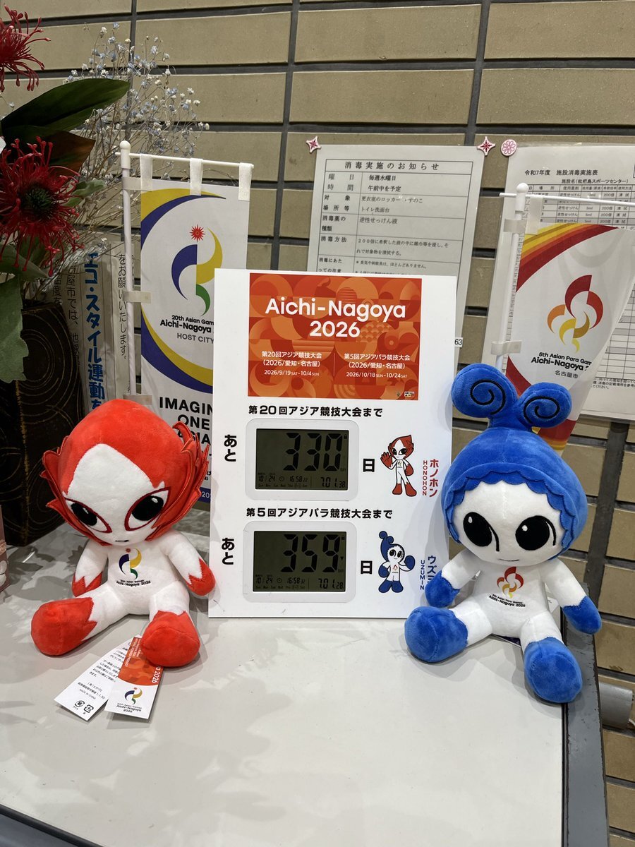 こんばんは。清須市の眼科、森眼科です。森眼科のある清須市は名古屋市西区、名古屋市中村区のすぐお隣で、通いやすいですよ。先日、枇杷島スポーツセンターまでお散歩に行きました。アジア大会のホノホンとウズミンが飾ってありましたよ♪ #清須市 #眼科 #西区 #中村区 #白内障手術 #清須へおいでよ pic.x.com/klxHZ3v3g3