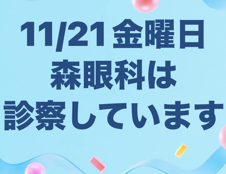 おはようございます。清須市の眼科、森眼科です。今日、11月21日(金曜日)は愛知県の「県民の日学校ホリデー」で、清須市の小学校・中学校がお休みです。森眼科は通常通り診療しております♪ #清須市 #眼科 #学校医 #愛知県 #小学校 #中学校 #県民の日 #学校ホリデー #清須へおいでよ #近視 #遠視 pic.x.com/prwrSNXEhG