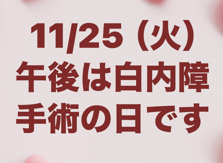 おはようございます。清須市の眼科、森眼科です。11/25火曜日午後は白内障手術の日です。西日本では黄砂が飛ぶようです。サングラスや眼鏡、マスクなどをするといいですよ〜 #清須市 #名古屋市 #西区 #中村区 #眼科 #白内障 #日帰り白内障手術 #緑内障 #オルソ #清須へおいでよ #西枇杷島花咲森眼科前 pic.x.com/X8W7xfxuVL