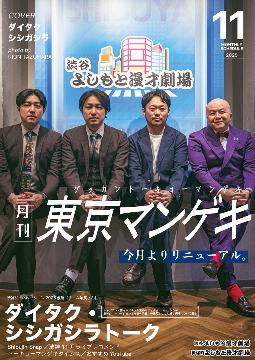 ━━━━*\ RENEWAL /*━━━━ 渋谷・神保町よしもと漫才劇場 📖月間パンフレット📖 ━━━━━━━━━━━━━━━━ 11月より 渋谷・神保町の両劇場の公演情報を 1冊にまとめたリニューアル版が登場🆕✨ 記念すべき初号の表紙は、 渋神ジェネレーション優勝 #チーム年長さん の