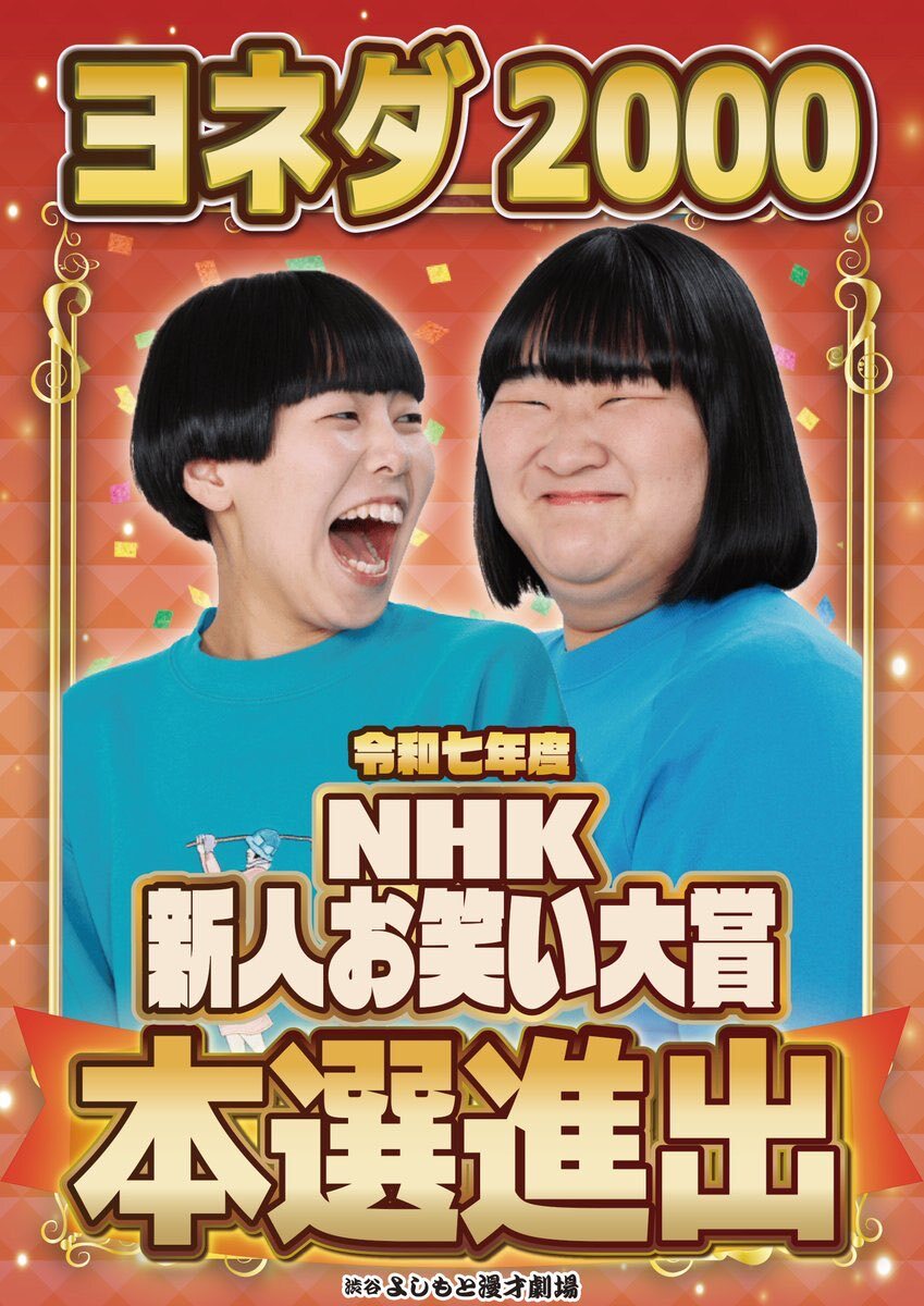🔥いよいよ明日🔥 「令和7年度NHK新人お笑い大賞」 渋谷・神保町よしもと漫才劇場からは #ヨネダ2000 #家族チャーハン が本戦出場いたします❤️🔥❤️🔥 10月26日(日) 午後4時~ NHK総合テレビ(全国)にて生放送💁♀️ 全力応援💪よろしくお願いします🔥 #NHK新人お笑い大賞 #渋谷よしもと漫才劇場 pic.x.com/VIqA59GPyY