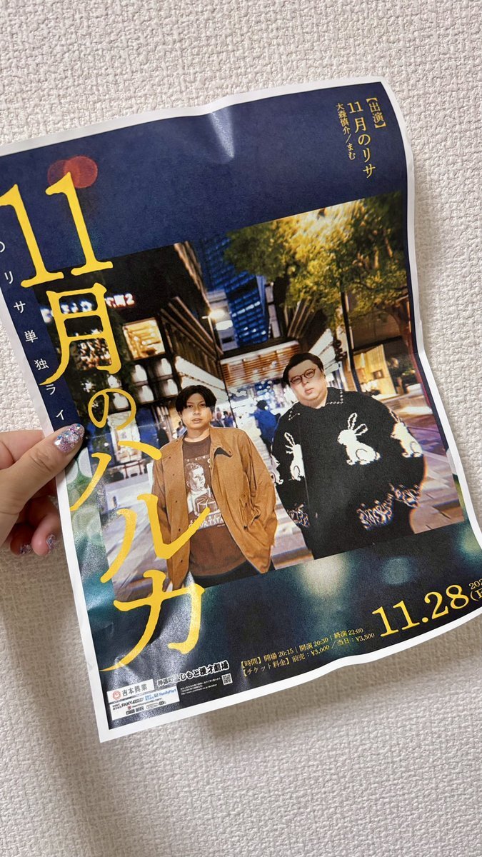 今日は11月のリサが見たくて #渋谷よしもと漫才劇場 に行ったんだけど 帰り単独のチラシ配っていたので、即チケット購入させて頂いた 金曜日は基本次の日が朝3時起きだから行こうか迷ってたけど やっぱり今日も面白くて行こうと背中を押して頂けた🙏 pic.x.com/92xKF8v0GW