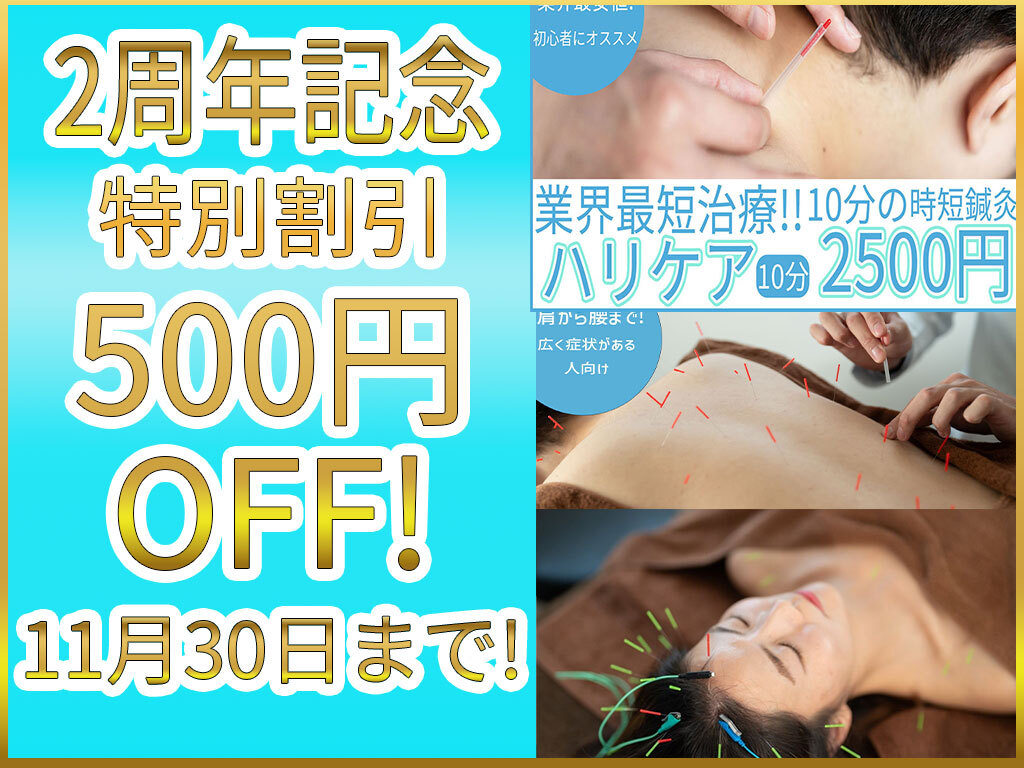 開院2周年キャンペーン! 11/30まで500円〜1,000円OFF継続中! 肩こり10分2,500→2,000円 全身60分9,900→8,900円 渋谷駅3分・夜22時まで・個室 口コミ4.87!今すぐ予約→beauty.hotpepper.jp/kr/slnH0006846… #reCare渋谷 #開院2周年 #渋谷鍼灸 pic.x.com/DqcRwM8cMC