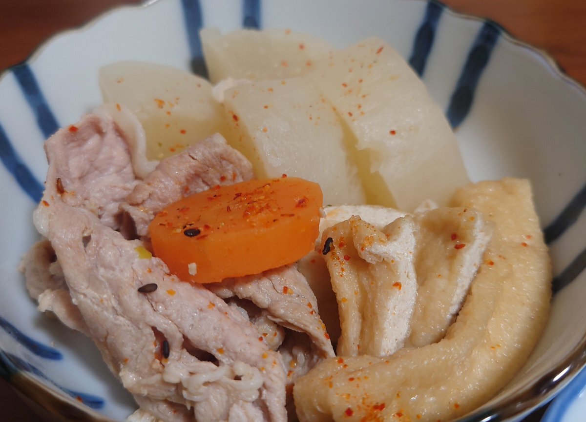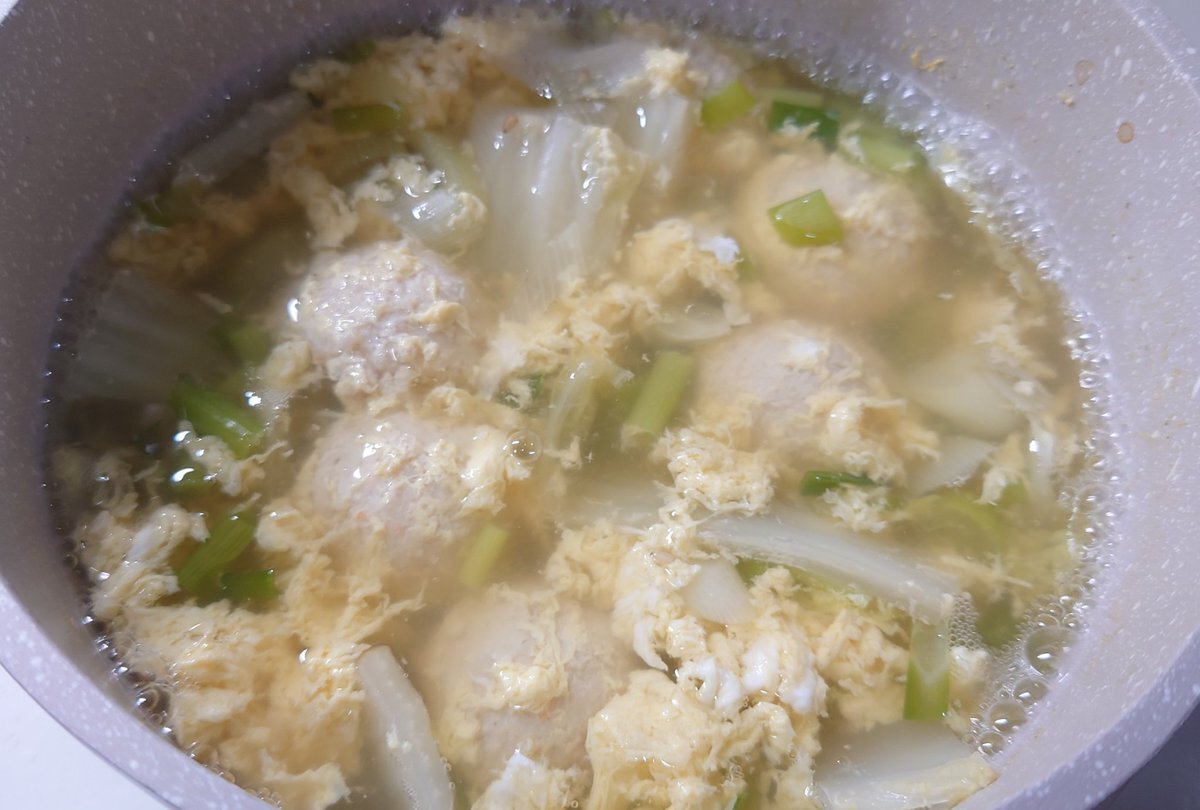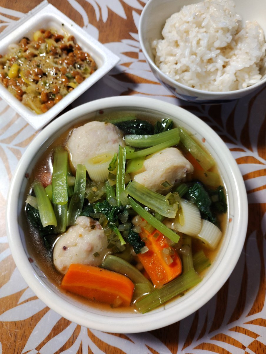 夕食はいかのつみれスープ。半額なつみれとそろそろヤバい小松菜で。納豆はとっくに。私の体は期限切れで出来ているw #自炊 #節約 #減塩 #男子ごはん #おうちごはん #料理好きな人と繋がりたい pic.x.com/WAG4zofrK5