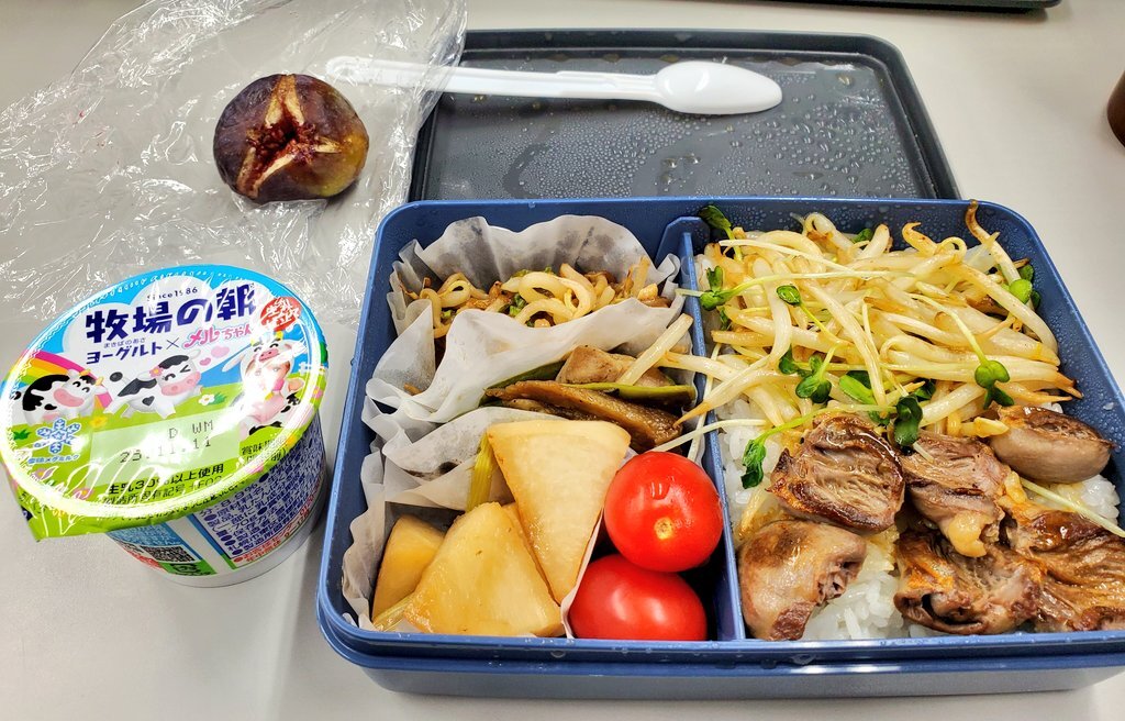 11/10 減塩 昼 ごはん 大麦ごはん 鶏ハツ 0.2g 鶏茄子インゲン炒め 0.3g もやしナッツ炒め 0.3g カブの酢煮 0.2g ヨーグルト 0.1g イチジク 塩分摂取 1.1g お疲れさまです。 今日は昨日の晩ごはんの残りスペシャル☺️ ハツは焼きました☺️ 午後からも頑張りましょう😊 #減塩 #お弁当 pic.x.com/rSezMasGhj