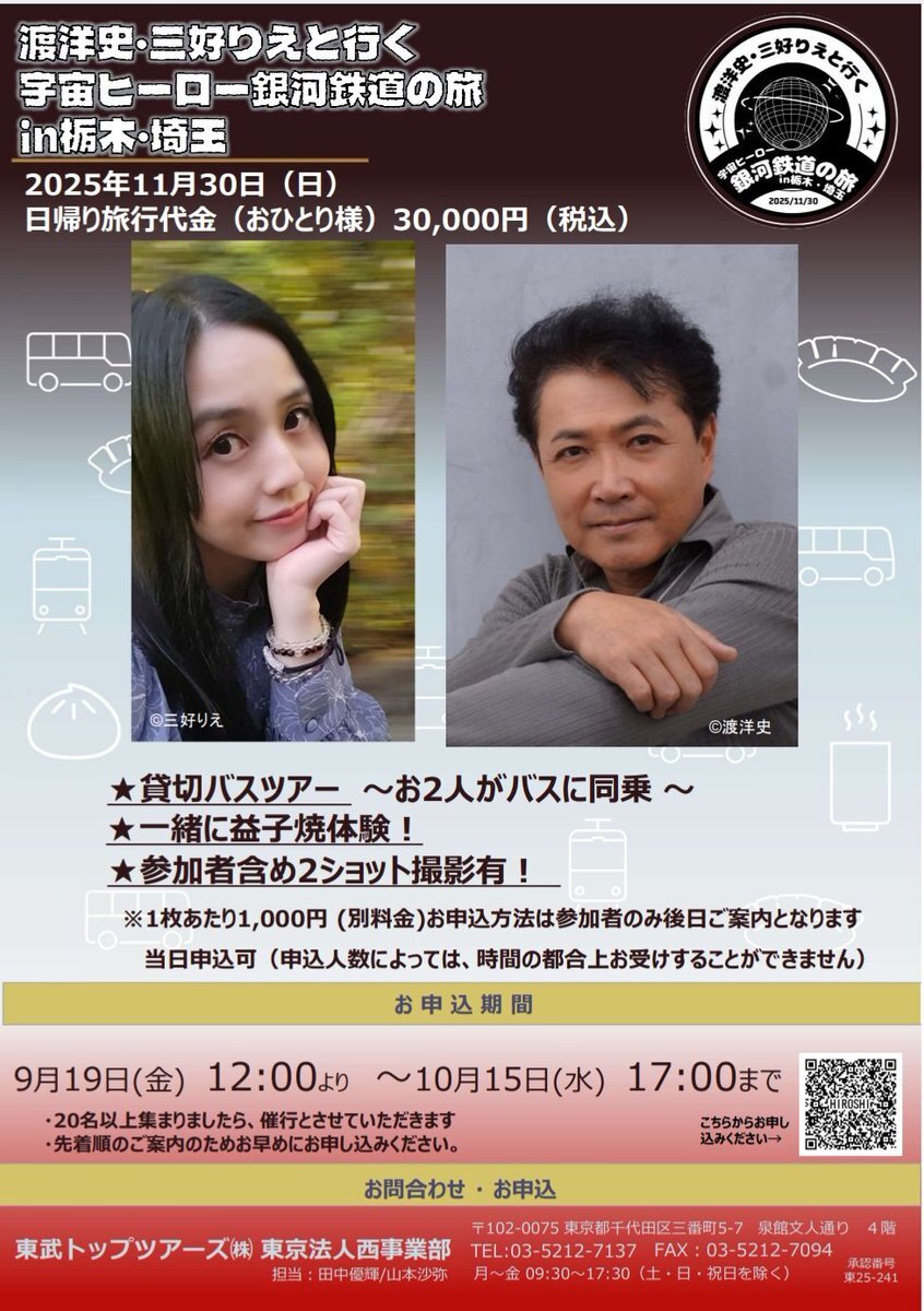 11月30日(土)バスツアーが決定❗ 今回のお相手は⁉️御縁がありまして #渡洋史 さんです🎵 宇宙刑事シャリバン、巨獣特捜ジャスピオンのブーメラン役、時空戦士スピルバン、城洋介役✨舞台•スターライトエクスプレスの新幹線ハシモト役等 詳しい情報はこちら↓ pic.x.com/c9x6Jbabst