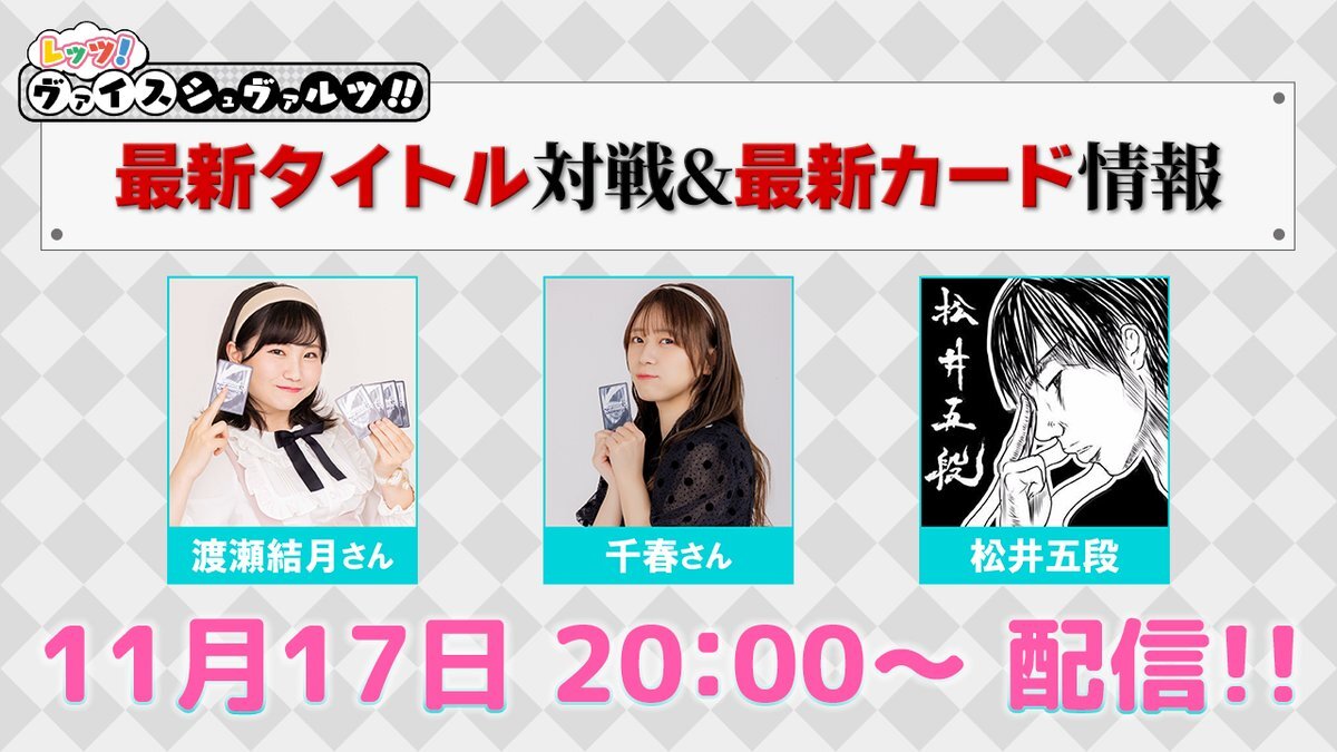 💥まもなく2️⃣0️⃣時より配信💥 📺レッツ!ヴァイスシュヴァルツ!!🎤 💫 最新カード情報盛りだくさんの配信です! 【出演】 #渡瀬結月 さん #千春 さん 松井五段がご出演!! WGPに向けて対戦も! 🔽配信はこちら! youtube.com/watch?v=jCx-1z… #WS pic.x.com/JhsJ3k1uho
