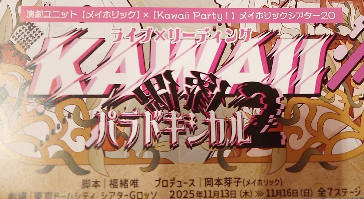 #舞台かわぱ2 15日(土) ☀️13:30/アフタートークショー 🌟18:30/お見送り会 🎫当日券有り! ⏰公演尺約150分 別途休憩10分 🎞️配信有り✨ confetti-web.com/@/may-holic20_… 公演翌日から7日間視聴可能 非売品2Lブロマイド付きも! 🛍️通販限定チェキ本日17時まで! mayholic.official.ec #メイホリ