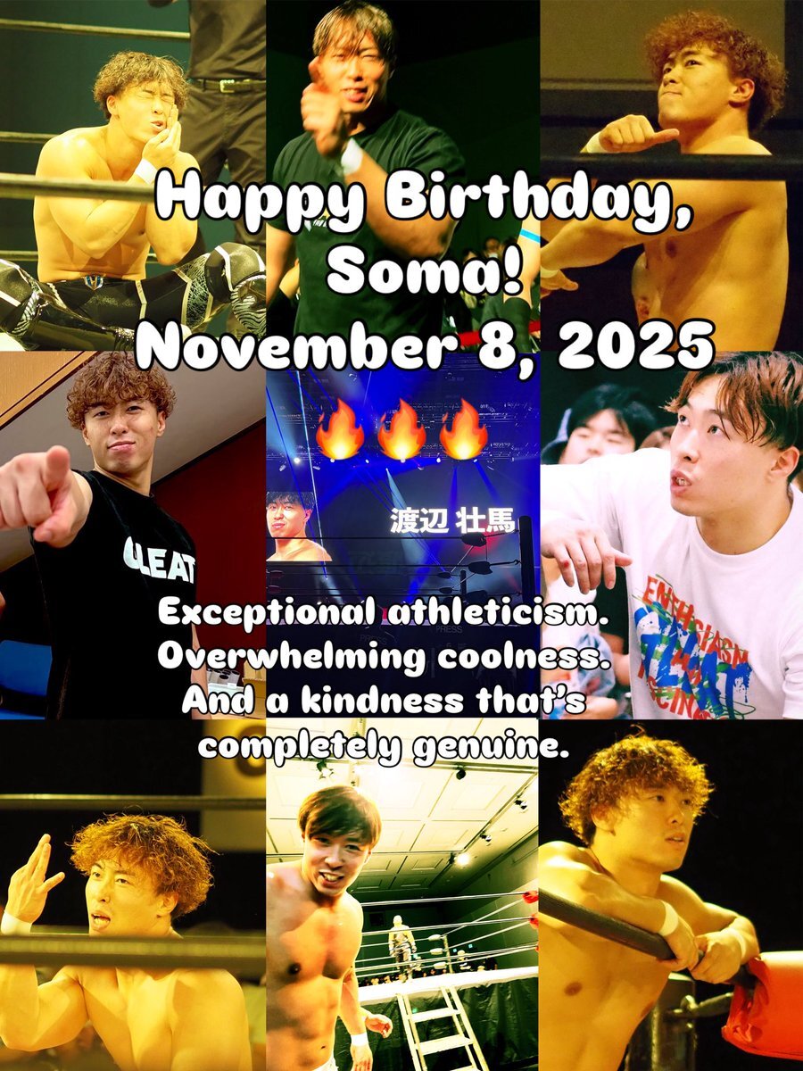 おはようございます! 今日はみんな大好き壮馬さんのお誕生日🎂 類稀なる身体能力。 圧倒的なカッコ良さ。 そして計算なしの優しさ。 これからも私たちをどきどきさせてください🔥🔥🔥 May a lot of happiness come your way, Soma❤️🔥 #GLEAT #渡辺壮馬 選手 #プロレスラー pic.x.com/tViW5xJU78
