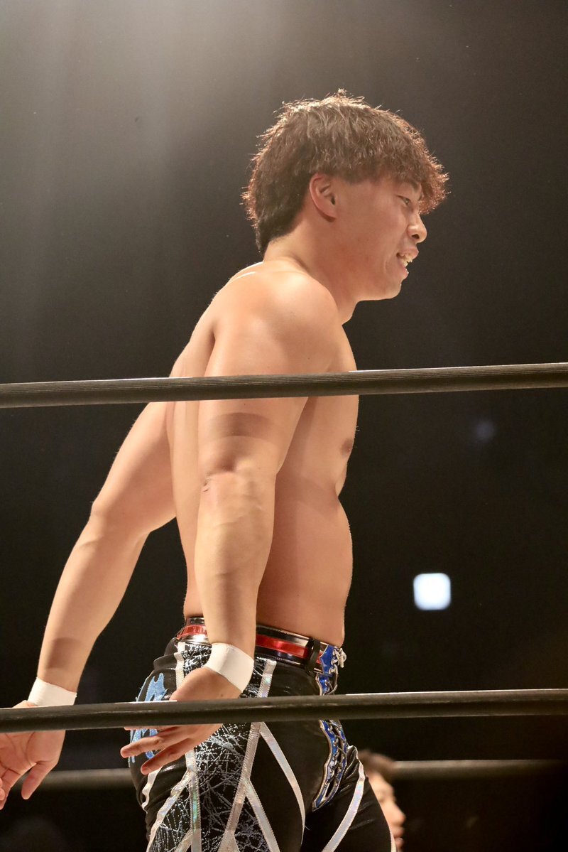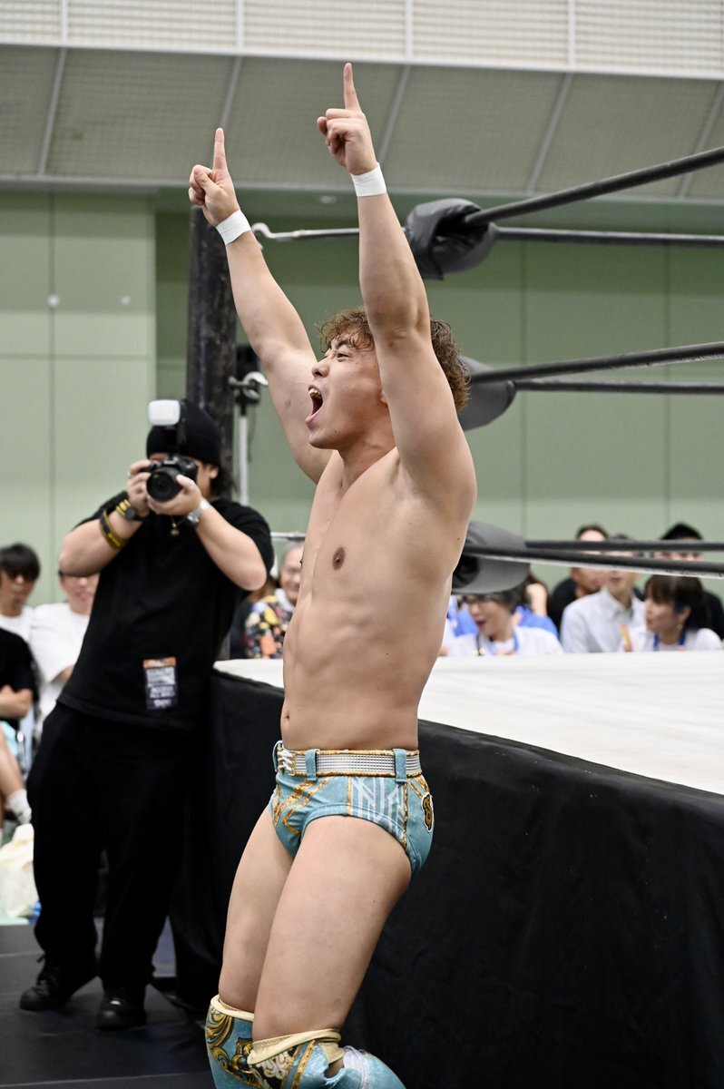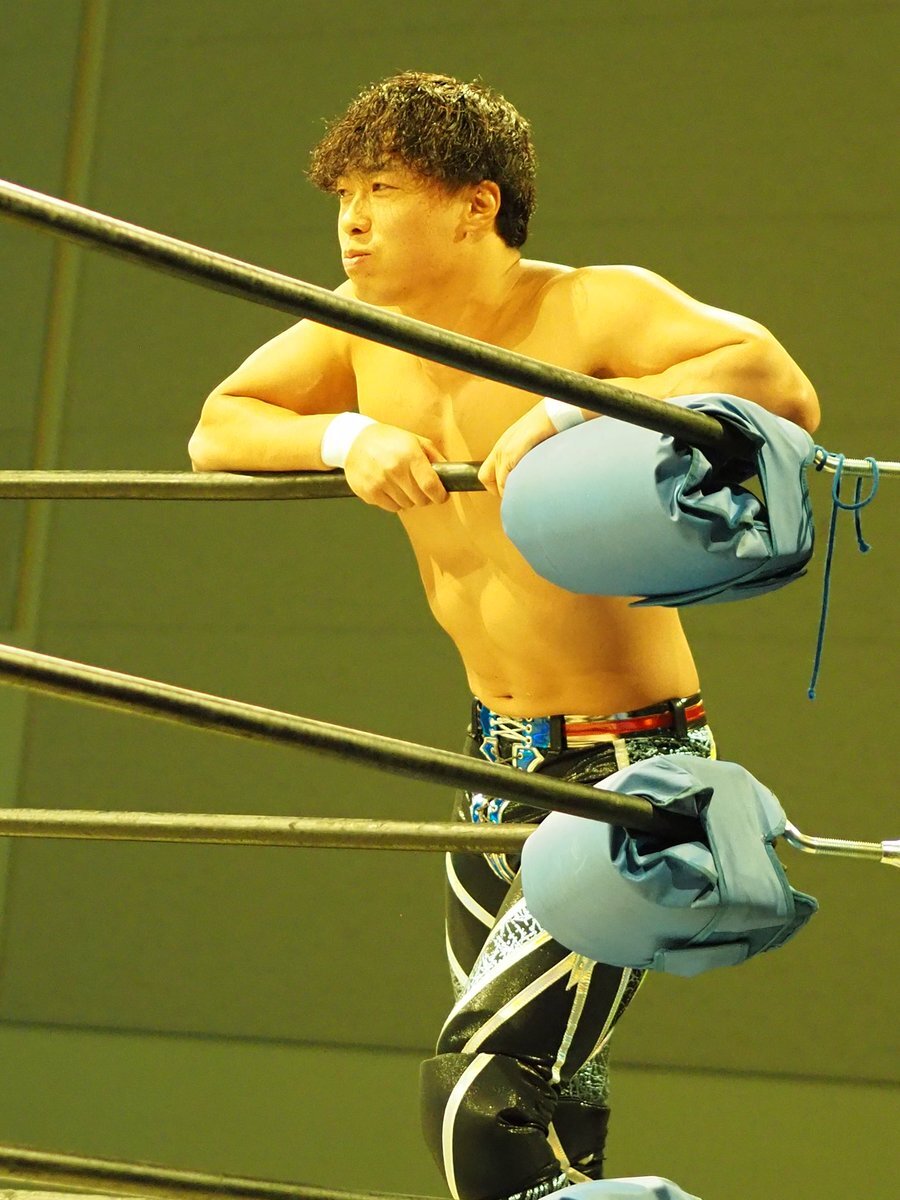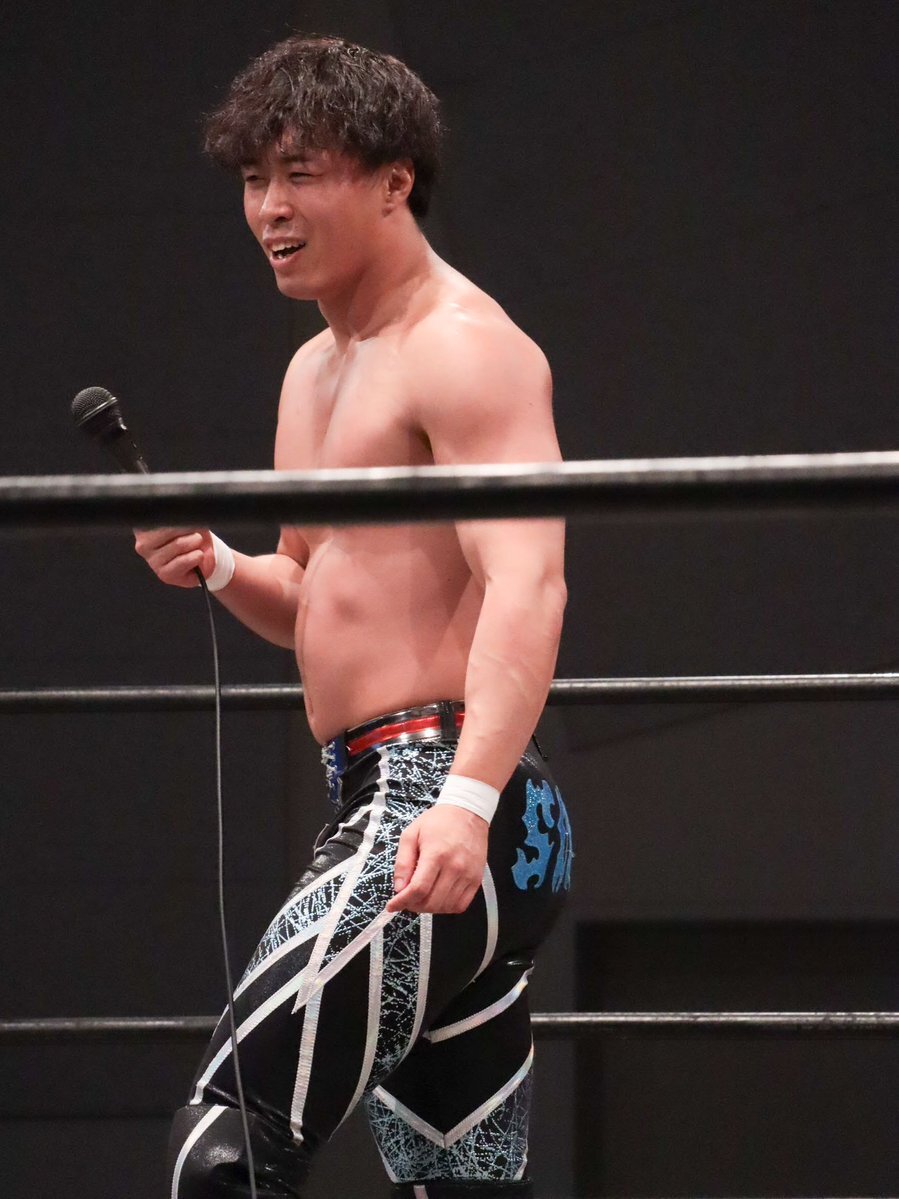 新コスチューム、黒とブルーいいかんじだし似合ってたなぁ けどまだ取り込めてないからさわやかに振り切ったこちらの #渡辺壮馬 選手 2025年9月28日 名古屋ダイアモンドホール #GLEAT pic.x.com/XIjTIvpove