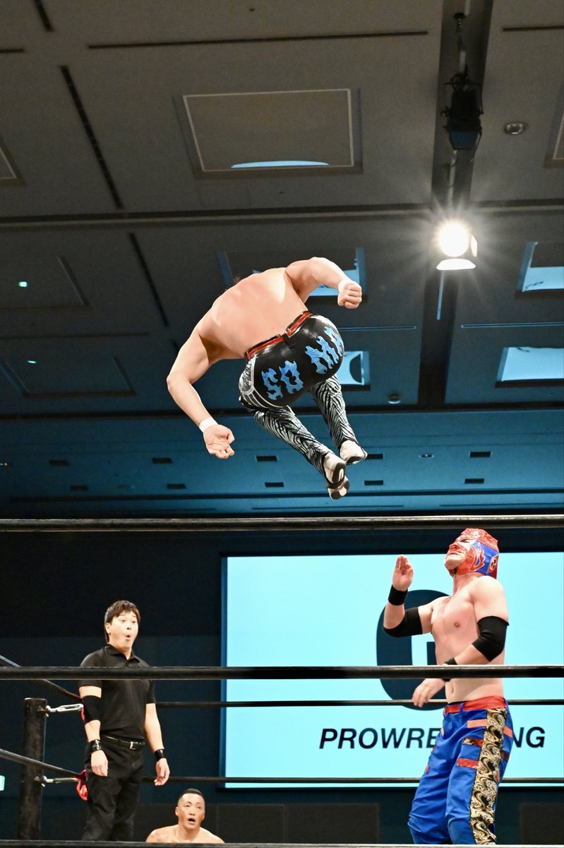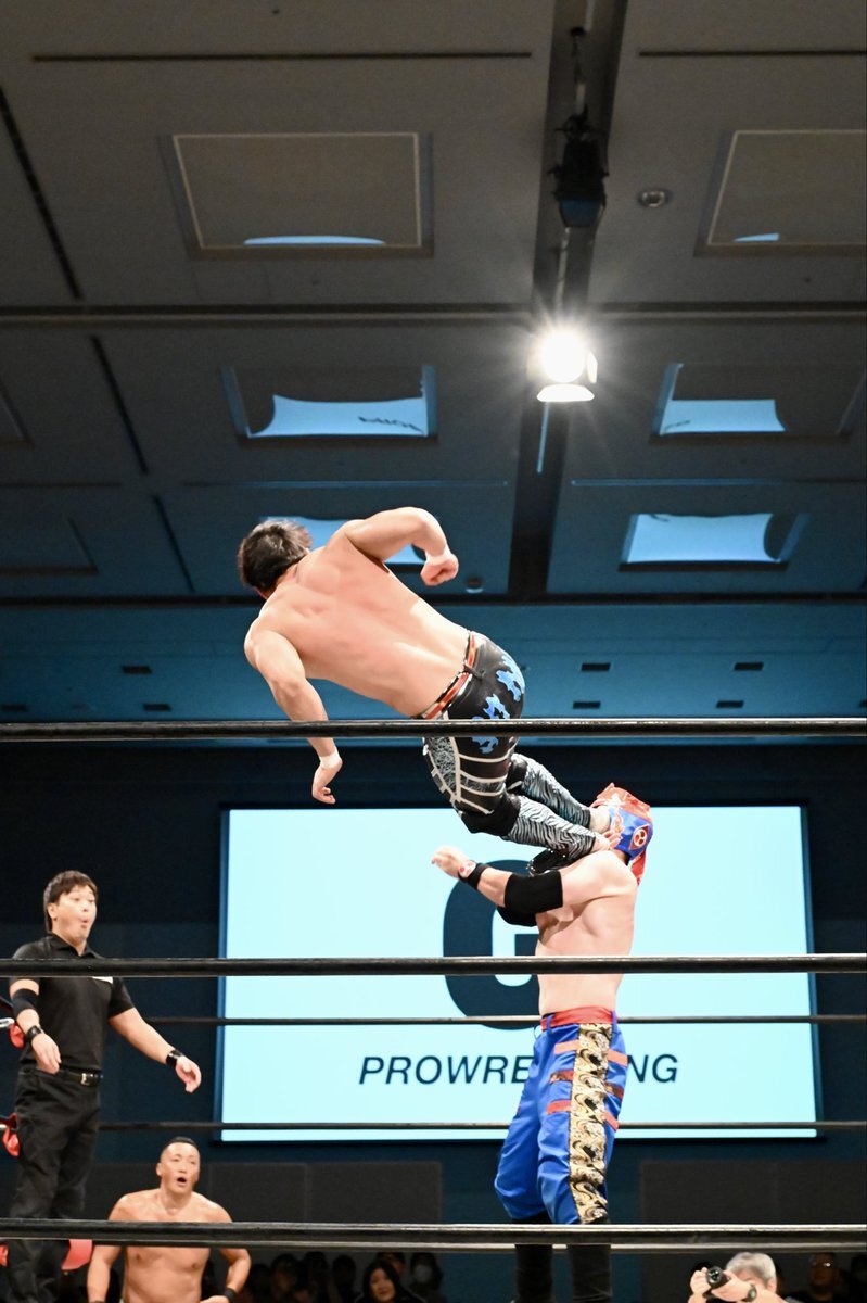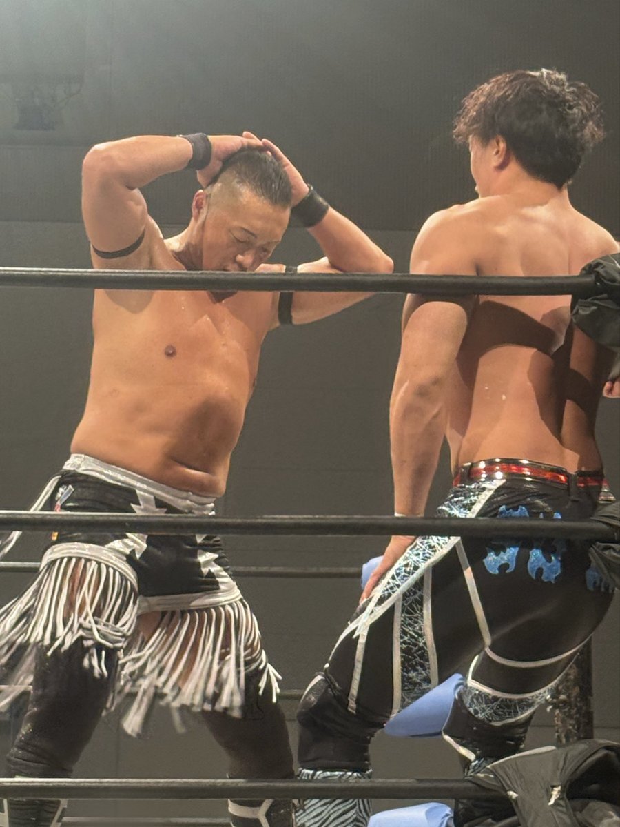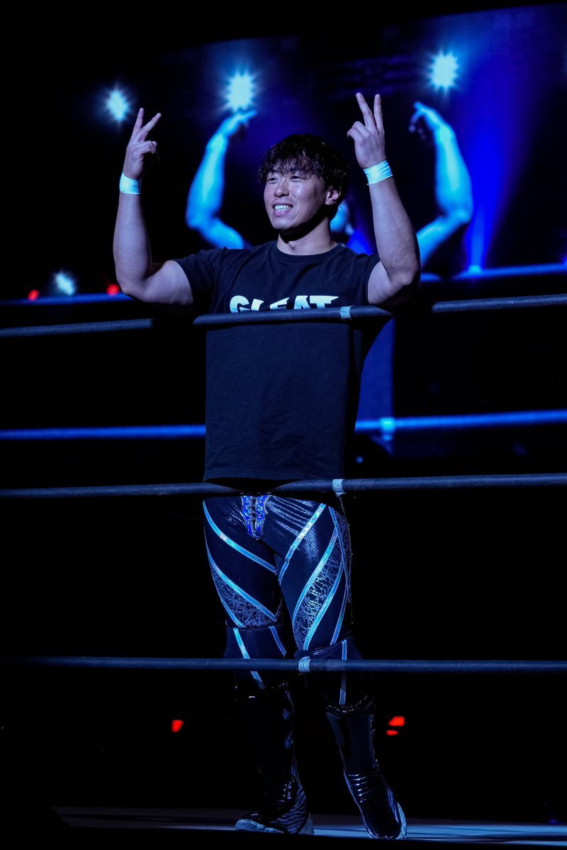 新コスチューム、黒とブルーいいかんじだし似合ってたなぁ けどまだ取り込めてないからさわやかに振り切ったこちらの #渡辺壮馬 選手 2025年9月28日 名古屋ダイアモンドホール #GLEAT pic.x.com/XIjTIvpove