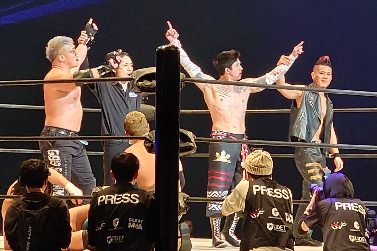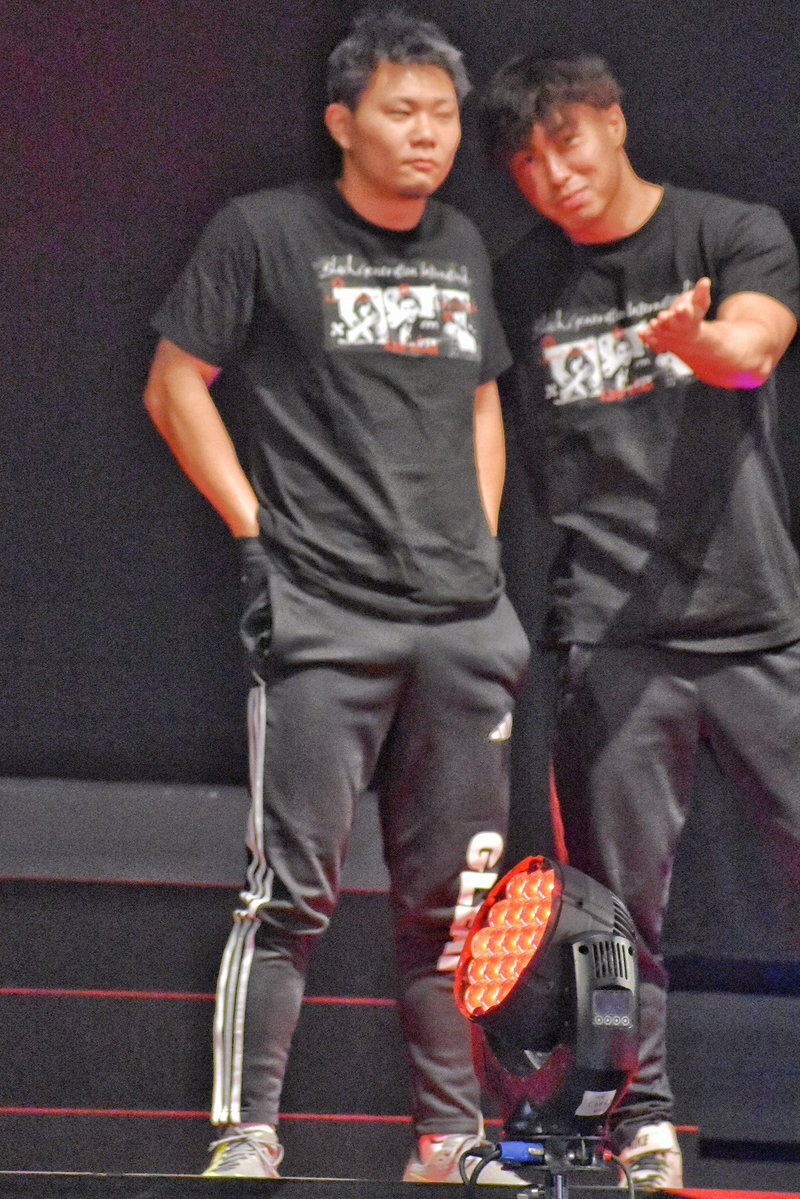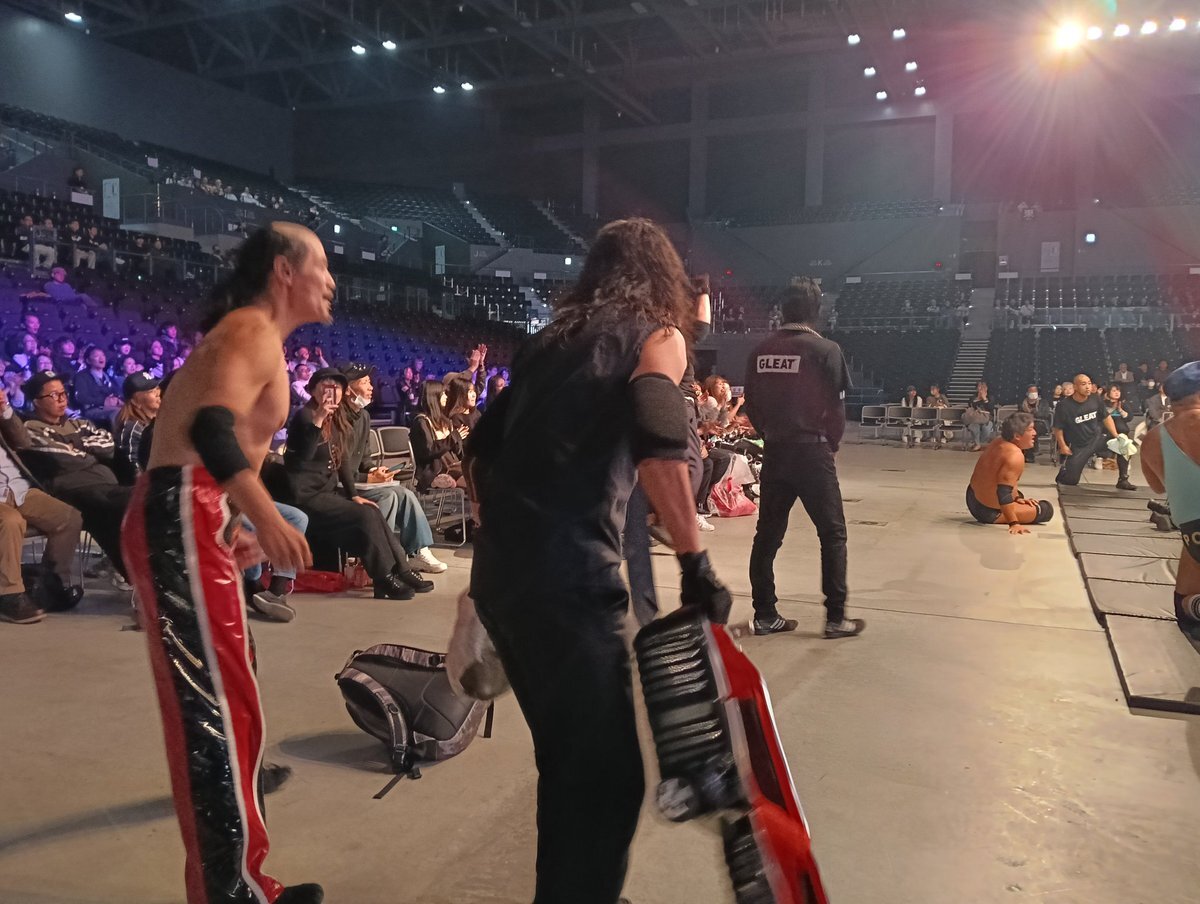 #パーカー・ブードロー vs #渡辺壮馬 になった時、#バラモン兄弟 が壮馬を応援してた😂🤣😆🤭 でも私のエリアに水を撒かれなくて本当によかったです🙇 #GLEAT #LIDET #横浜BUNTAI pic.x.com/DMOqqPhZVE