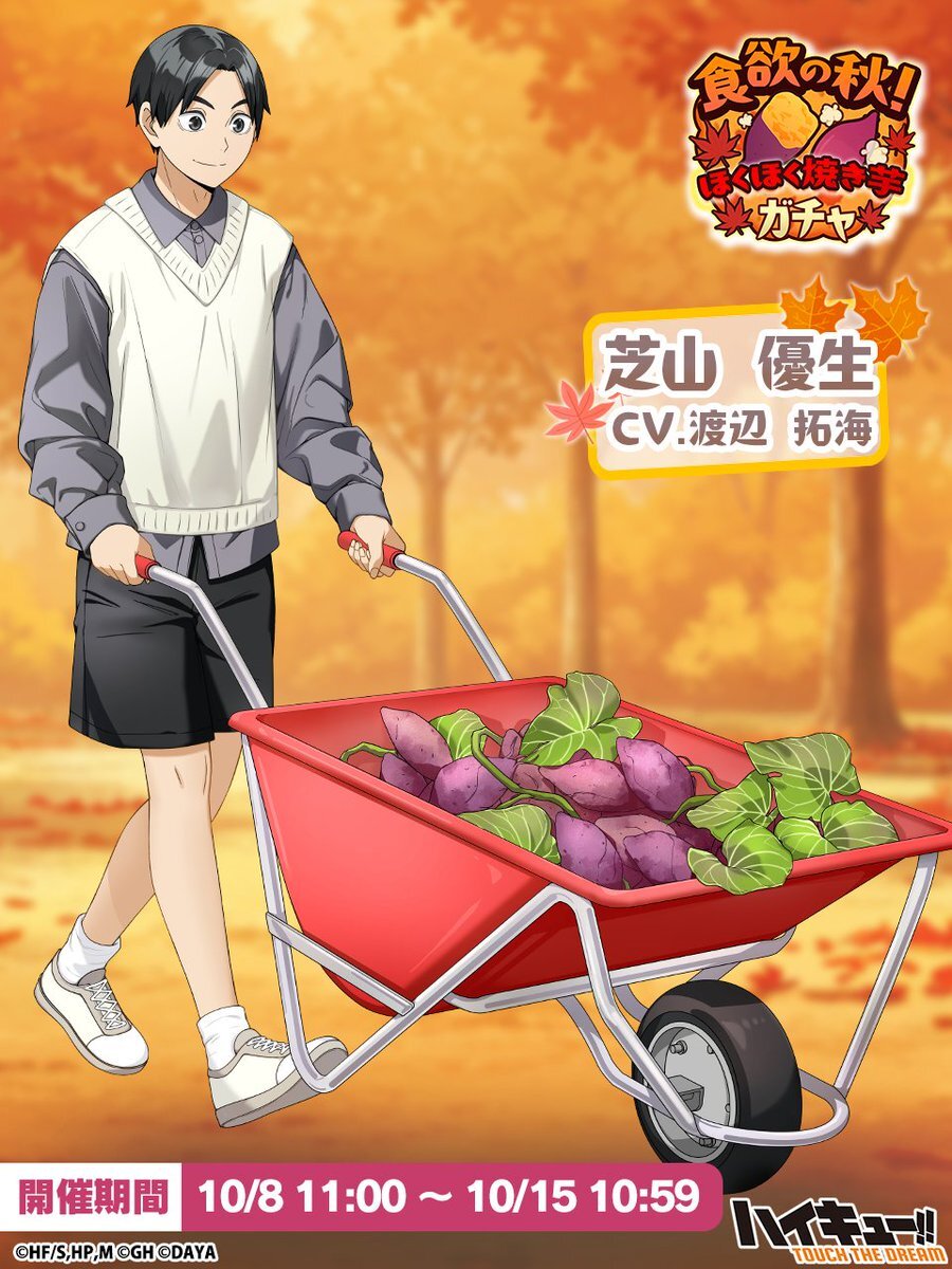 \🍠ピックアップガチャ予告🍁/ ____________ 『焼き芋』#芝山優生 『焼き芋』#花巻貴大 『焼き芋』#黄金川貫至    登場予定‼  ̄ ̄ ̄ ̄ ̄ ̄ ̄ ̄ ̄ ̄ ̄ ̄ #ハイドリ #ハイキュー #hq_anime #渡辺拓海 #櫻井トオル #庄司将之 pic.x.com/bbTzKuX0bs