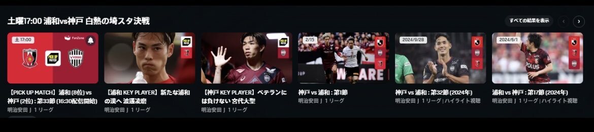 本日 #浦和レッズ🆚#ヴィッセル神戸 はPICK UP MATCH。特別レーンを設定して過去3シーズンのハイライト、#渡邊凌磨 選手、#宮代大聖 選手 のゴール集もあります!個人的には2年前埼スタ、終了間際のコーナーからの大迫選手ゴールが印象に残っています。 試合前にぜひご覧ください!#DAZN pic.x.com/dHoHFPockG x.com/dazn_jpn/statu…