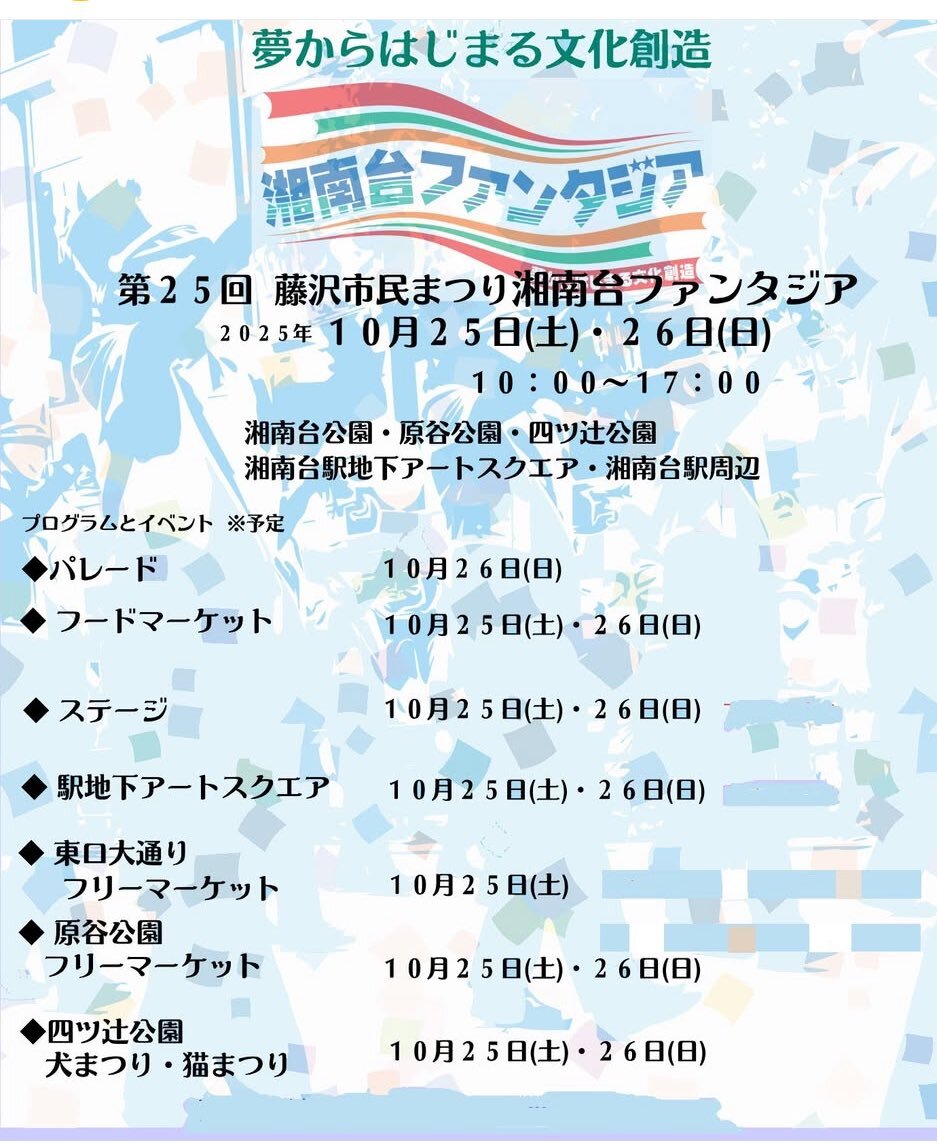 【ステージ情報】 本日の『 湘南台ファンタジア 』 若干天気が不安定ですが 現時点では予定通り開催です! 最新の情報は #湘南台ファンタジア のHPにて shonandai-fantasia.net ■ 10/25(土) 12:00 出演 ■ 藤沢市 湘南台 湘南台公園 #Singerharu #湘南台公園 #アートスクエア #四ツ辻公園 #原谷公園 pic.x.com/pC4oRC8K71 x.com/singerharu9000…