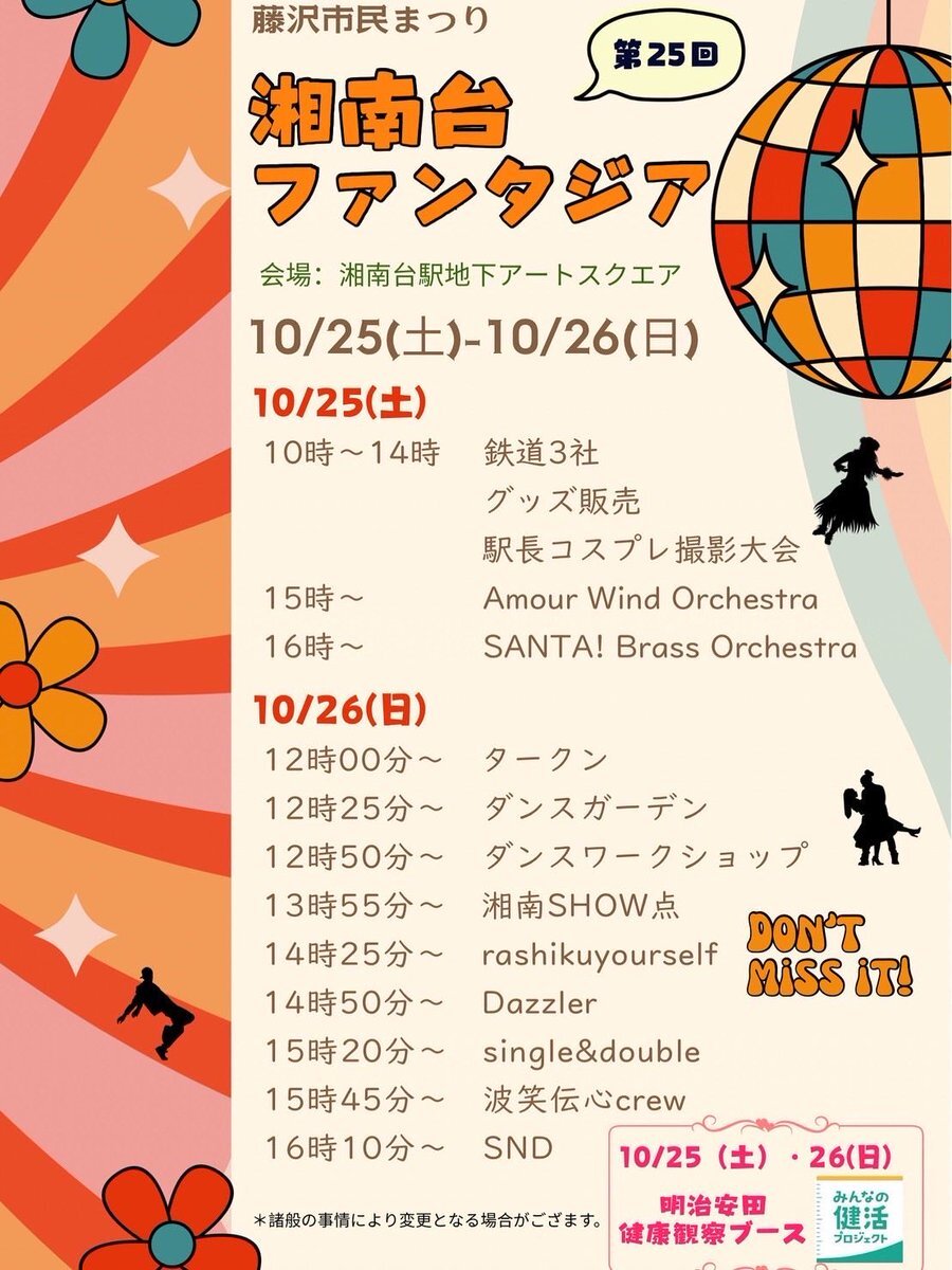 【イベント出演のお知らせ】 「藤沢市民まつり 第25回湘南台ファンタジア」 にSANTA! Brass orchestraが出演します! 📅 10/25(土)16:00〜 📍 湘南台駅地下アートスクエア ✨ 入場無料 ぜひお越しください! #SANTAbrassorchestra #さんぶら #サンブラ #吹奏楽 #吹奏楽団 #湘南台ファンタジア pic.x.com/jWNltcQQ7B
