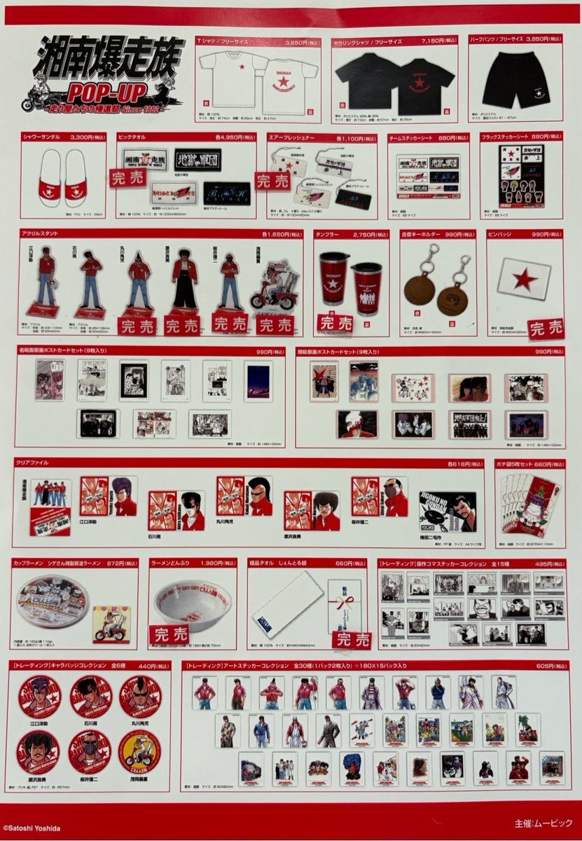 【湘南爆走族POP-UP -走り屋たちの帰還祭 Since 1982-】マルイシティ横浜 《完売情報》 本日、11/8(土)閉店時の完売情報です。 詳細は画像をご確認ください。 HP>0101.co.jp/077/event/deta… #湘南爆走族 pic.x.com/1FGRRp6YWN