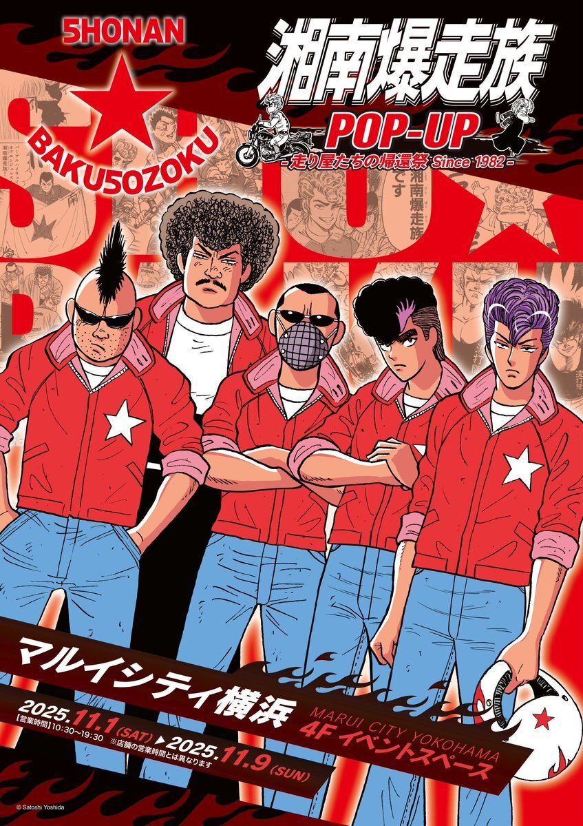 「#湘南爆走族 POP-UP -走り屋たちの帰還祭 Since 1982-」大阪会場は来週11/28より #なんばマルイ にて開幕!横浜会場で完売続出の限定グッズも全商品補充完了!皆様のお越しをお待ちしてます✨ #湘爆 #湘南爆走族ファーストフラッグ #吉田聡 #ポップアップショップ #ポップアップストア #ムービック pic.x.com/MrxZab7pqn x.com/movic_pr/statu…