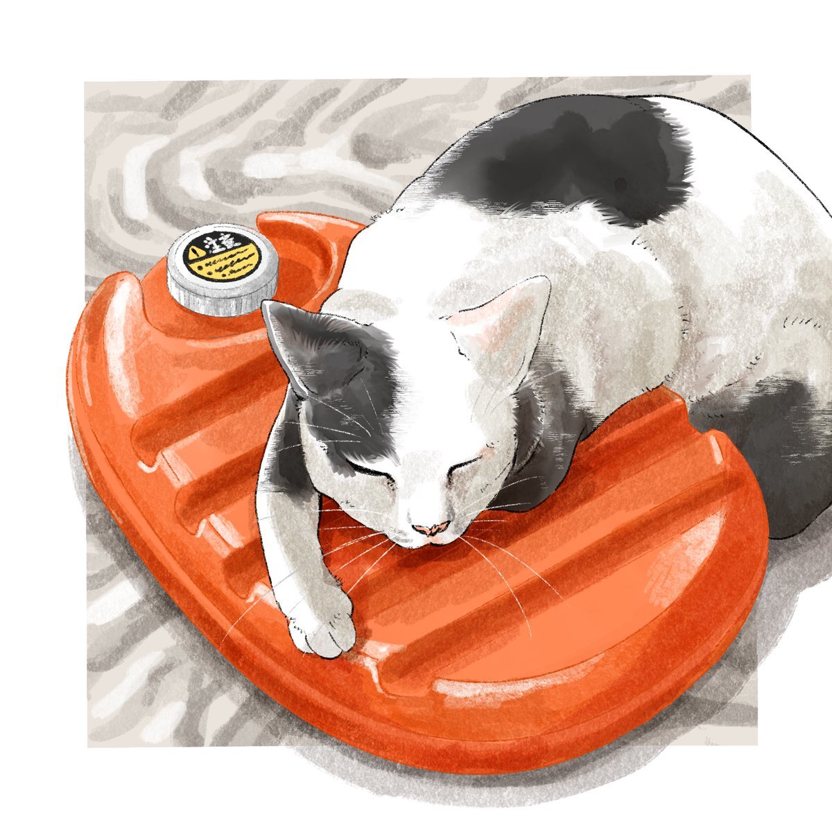 本日は「#湯たんぽの日」です♪ お気に入りの湯たんぽを抱っこしてたら、寝ちゃったみたい…😉 #イラスト #今日は何の日 #ゆるいイラスト pic.x.com/wezXMiCVll