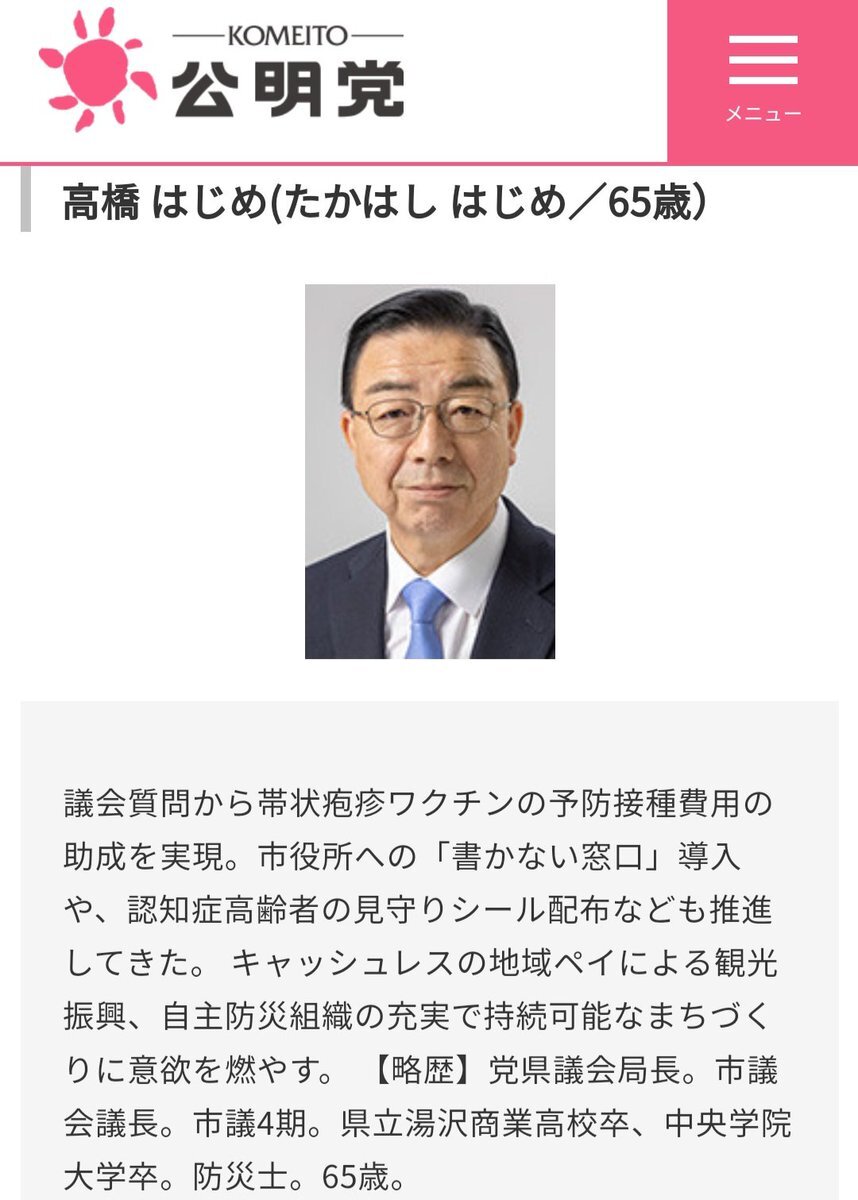 2025年10月19日(日)投票日 #湯沢市議会議員選挙#高橋はじめ】公明党候補 議会質問から帯状疱疹ワクチンの 予防接種費用の助成を実現 市役所への書かない窓口導入 認知症高齢者の 見守りシール配布も推進してきた "高橋はじめ" 議会へ送り返す一票を お頼み申し上げます komei.or.jp/election/detai… pic.x.com/oMzVGcUcqa