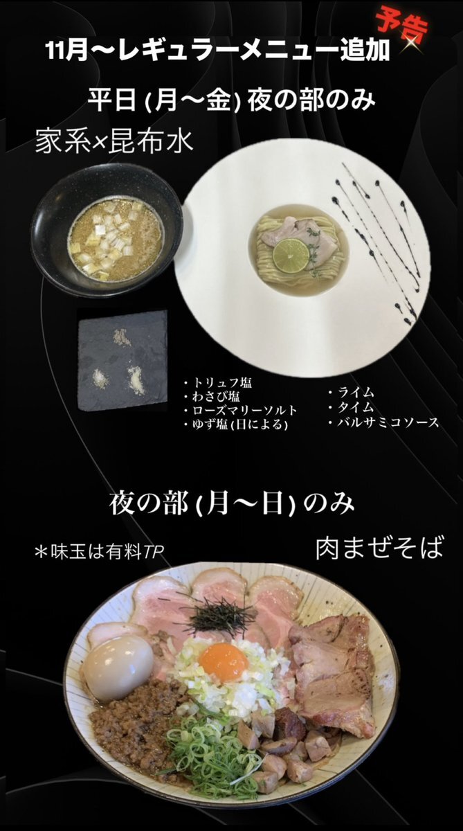 ☆お知らせ☆ 11月〜 "月〜金"夜の部限定 ・昆布水つけ麺 11月〜"月〜日"夜の部限定 ・肉まぜ          やります❗️ #家系 #家系ラーメン #ラーメン #滿帆家 #満帆家 #まんぽや #つくば #ひたち野うしく #茨城 #茨城グルメ 多少変わりますが完成系イメージです↓