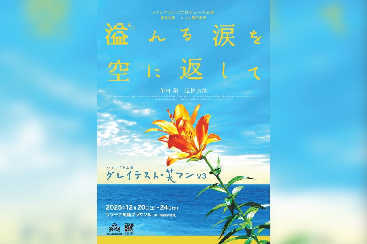 グランツプロデュース&横浜桜座 2本立て公演 『#溢れる涙を空に返して』 『#グレイテスト・笑マンV3』(#横浜桜座) 12月 20日(土)13:00/18:00 21日(日)13:00 22日(月)14:00 23日(火)14:00 24日(水)14:00 ◆ラゾーナ川崎プラザソル ◆チケットstage.corich.jp/stage/394516