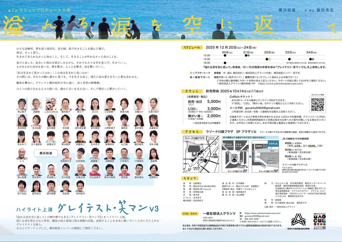 グランツプロデュース&横浜桜座 2本立て公演 『#溢れる涙を空に返して』 『#グレイテスト・笑マンV3』(#横浜桜座)  離島での出生前診断をめぐる    命の選別と現実と横浜桜座と。 📅2025/12/20〜24 📍ラゾーナ川崎プラザソル 🎫チケット申込み▶️stage.corich.jp/stage/394516/t…