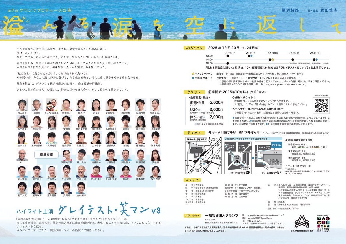 ━━━━ 次回公演 ━━━━ グランツプロデュース&横浜桜座 2本立て公演 『#溢れる涙を空に返して』 『#グレイテスト・笑マンV3』(#横浜桜座) 「あの子を産んで良かったのか」  命の選別と現実と横浜桜座と 📅2025/12/20〜24 📍ラゾーナ川崎プラザソル 🎫チケット申込みstage.corich.jp/stage/394516/t… pic.x.com/Xjr6cwnUcr