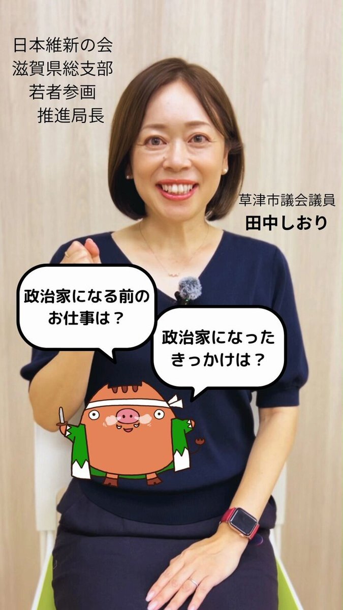 【なぜ議員に?】きっかけは意外と身近なところに。 日本維新の会 滋賀県総支部 若者参画推進局長 草津市議会議員 田中しおり 議員インタビューシリーズ①「きっかけと前職」 政治を「自分事」として考える。議員の過去と本音。 #政治を身近に #議員インタビュー #滋賀にも改革の風を