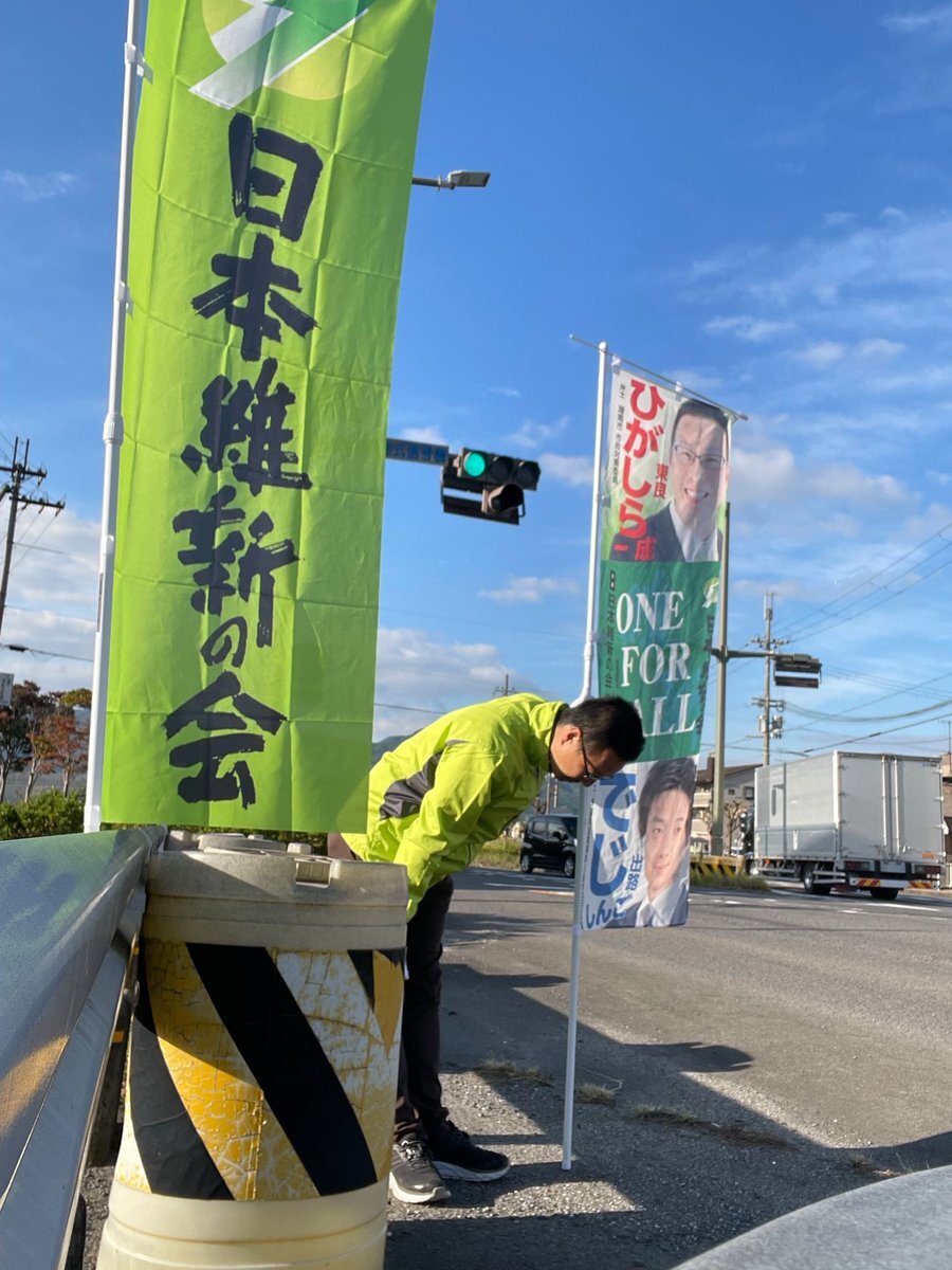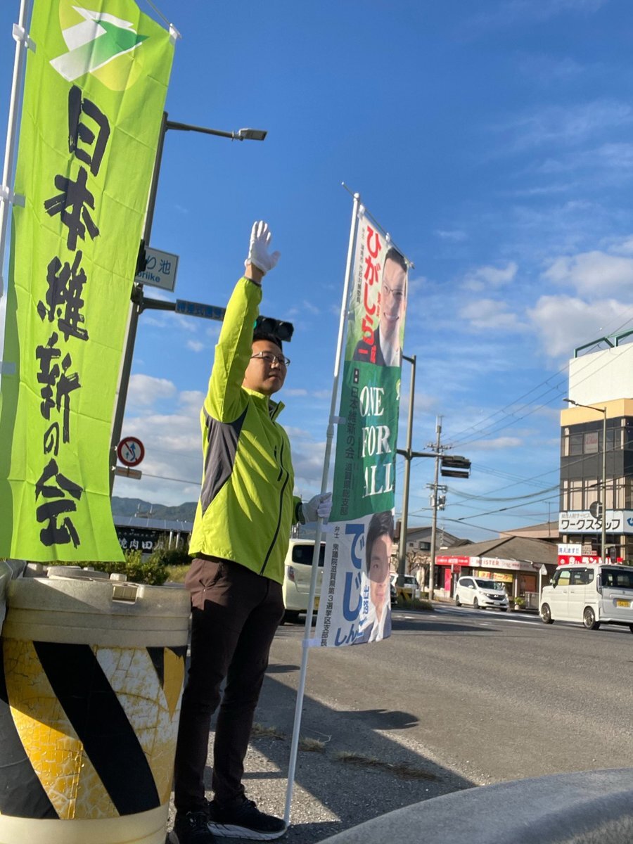 皆さんおはようございます☀️ 選挙活動最終日。20時ギリギリまでみなさまへ想いを届けさせていただきます🎙️ いつも温かいお声がけ、手を振りかえしていただきありがとうございます😭❤️ #ひがしら一成 #湖南市議会議員選挙 #湖南市 #日本維新の会 #滋賀維新の会 pic.x.com/PLY0vnn745