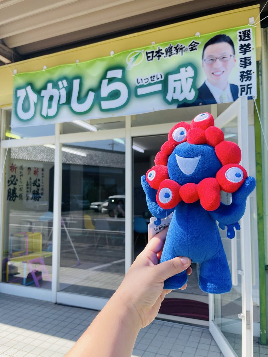 ミャクミャク〜! お休みに入ったのに、早速助っ人に来てくれたの!?ありがとう😭❤️ 万博お疲れ様。あと2日間力を貸してね🌸 #ミャクミャク が来てくれた! #万博 ありがとう #higashira_ishin #ひがしら一成 を応援しよう📣 #日本維新の会 #滋賀維新の会 pic.x.com/5omc9sJkIw