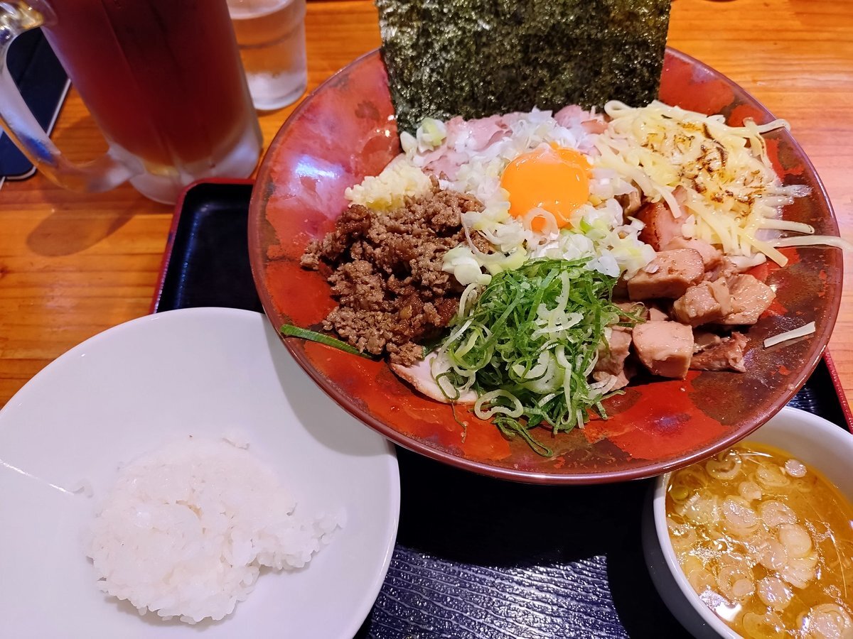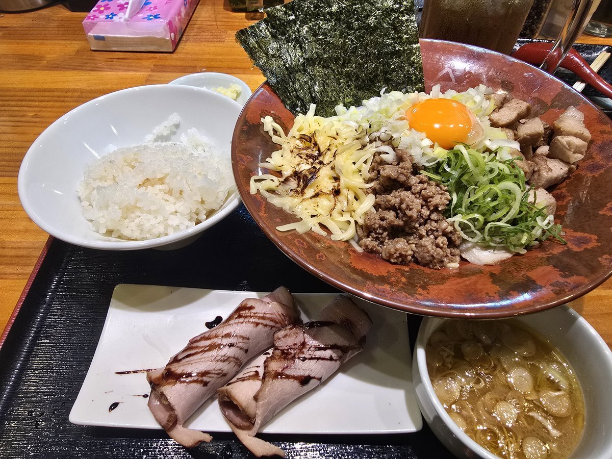 今日の初飯は滿帆家の限定肉まぜそば大炙りチーズ+まかない飯大+限定ジャージャージャー麺和え玉🍜 肉まぜそばまぜても、家系つけ汁つけても、追い飯入れても全部美味🥹 限定和え玉もガッツリ挽き肉入って肉の甘味もあるけどサッパリしててバランス完璧めちゃ好みで1軒で満足🤤 #滿帆家 #牛久市 pic.x.com/tWjUvGpVEq