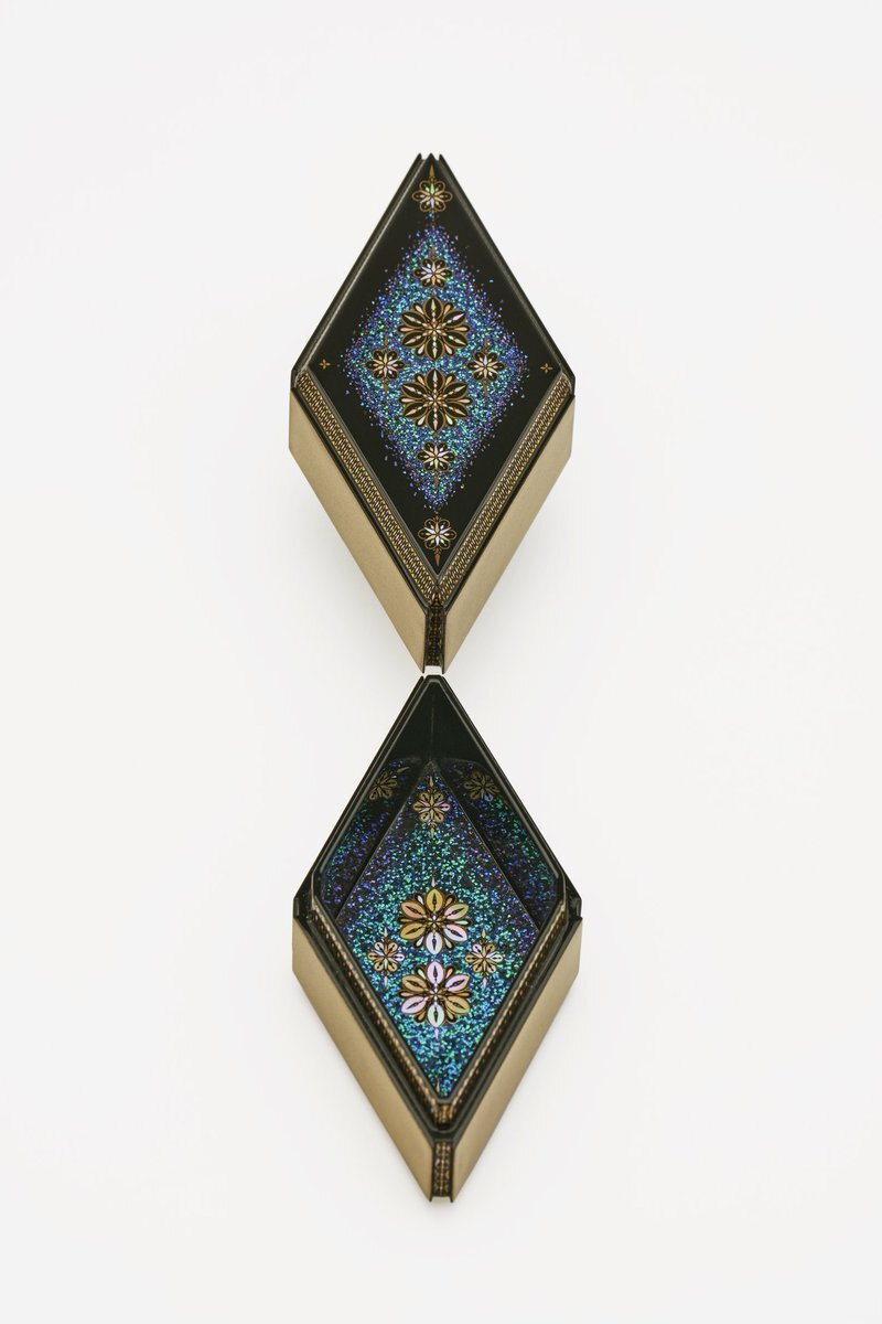 11月13日は #うるしの日 こちらの浅井作品をお楽しみください! 蒔絵螺鈿菱形香合 「燐光」 Diamond Shape Incense Container with Maki-e and Inlaid Mother-of-pearl 2022 @Yasuhiro_Asai Photo by Tadayuki Minamoto