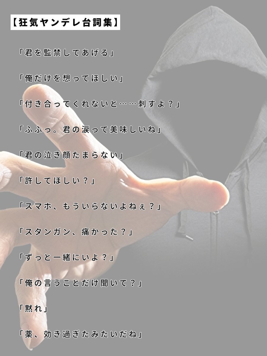 #フリー台本 #ヤンデレ 今月最初の台本はやはりヤンデレでした 水瀬ナギ様リクエスト『狂気ヤンデレ』 Youtube用とのことでちょうどいい塩梅を模索しました 本当はもっと暴れたかった 投稿の際には改めて宣伝させていただきます 性別、人称、口調、方言等原型を崩さなければ変更ご自由にどうぞ