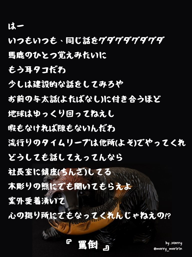 本日は.Merry(@merry_meririn)さんの『罵倒』を読ませてもらいました✨ たまには編集無しのセリフもいいモノです😊 #フリー台本 #台本募集 #めりつむぎ #ボイス投稿 #演侍ボイス #TEAM_RADISHFARM pic.x.com/71WQGi9XAx x.com/merry_meririn/…